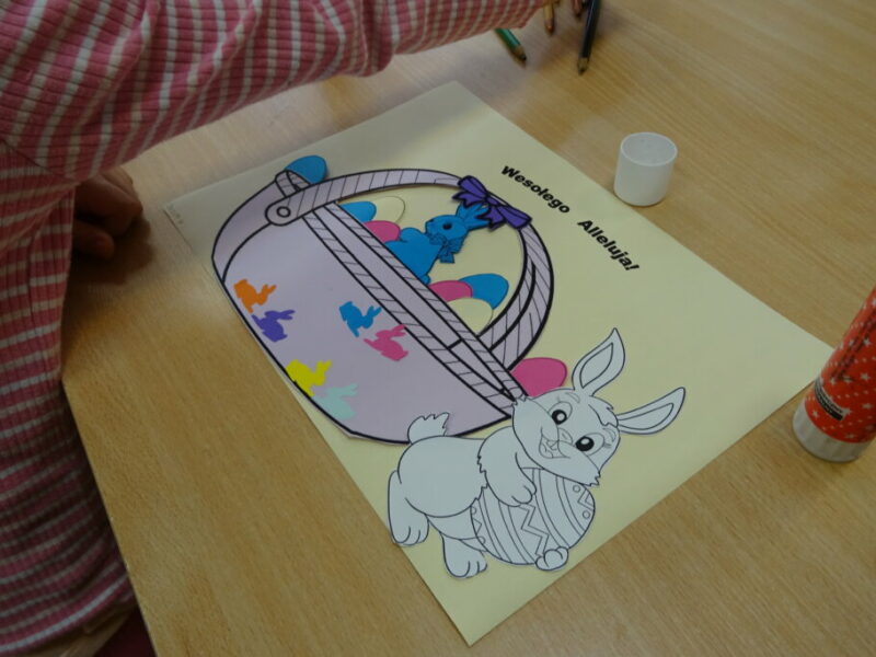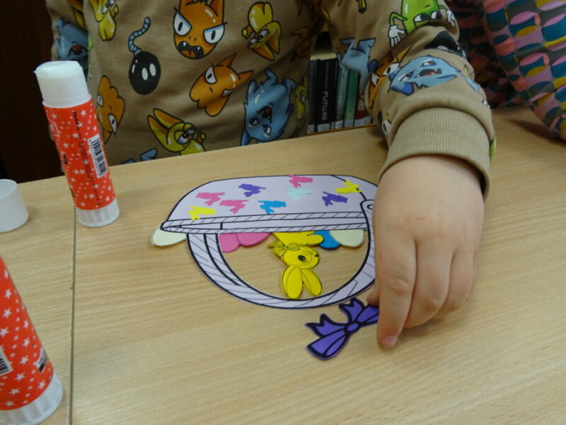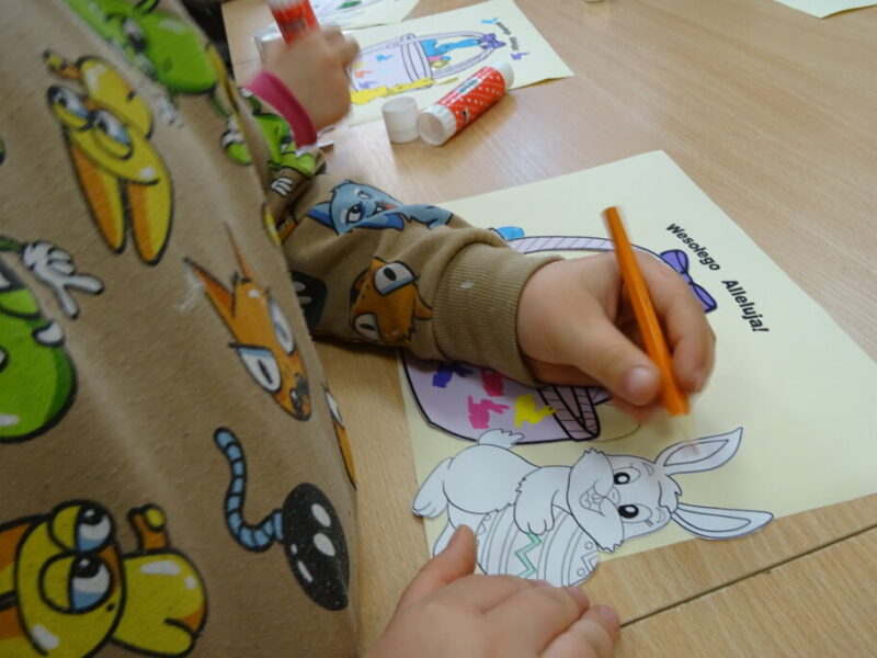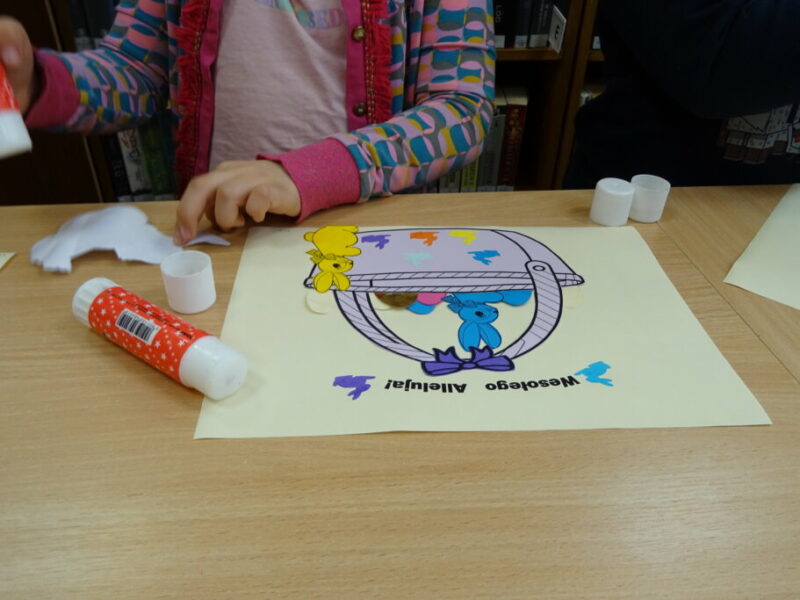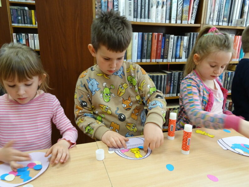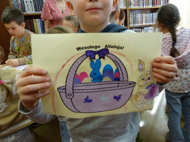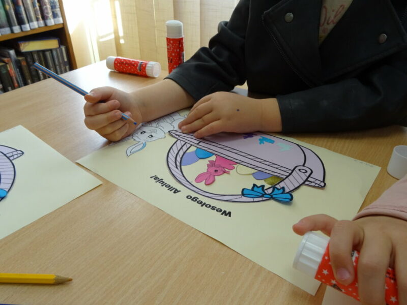 Dzieci zgłębiały temat zwyczajów wielkanocnych oraz poznały symbolikę zajączka, baranka, pisanek oraz lanego poniedziałku. Podczas spotkania czytano książkę Małgorzaty Strzałkowskiej „Wielkanoc” oraz „Tradycyjna Wielkanoc. Zwyczaje, obrzędy, symbole”.
