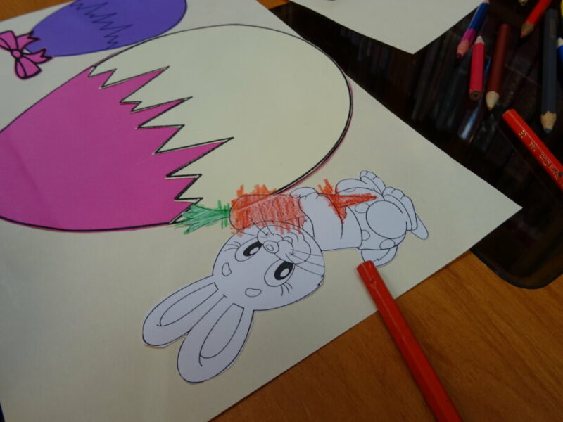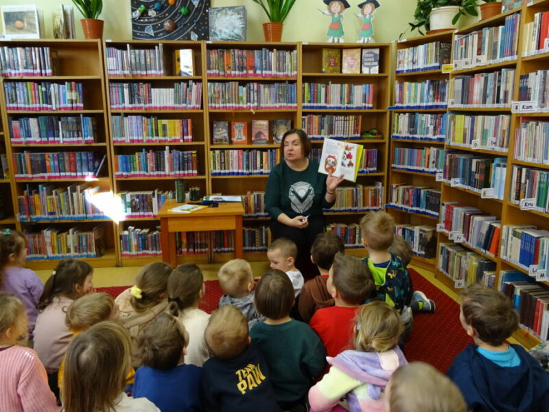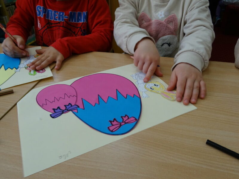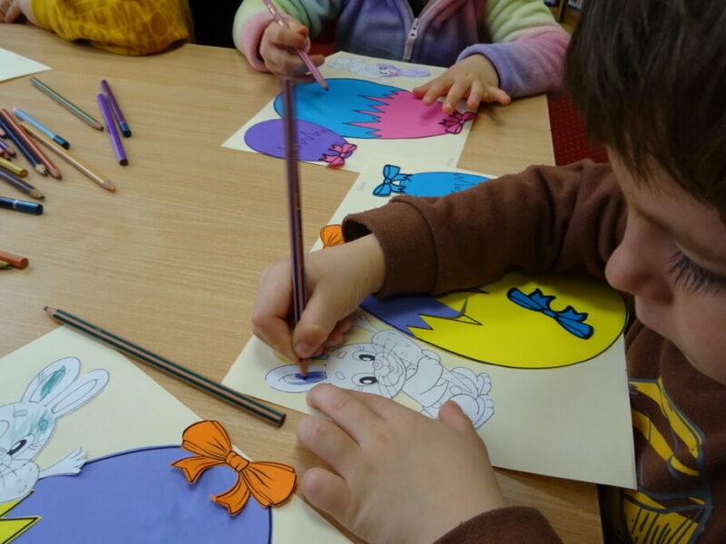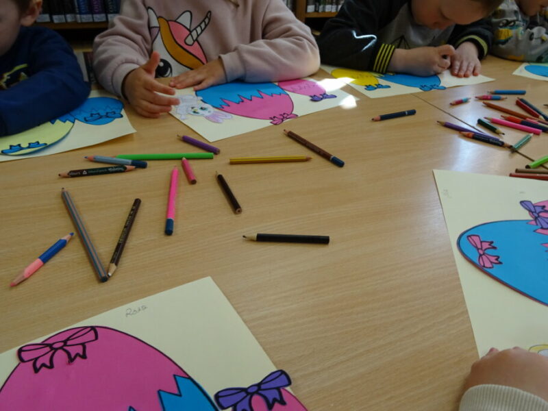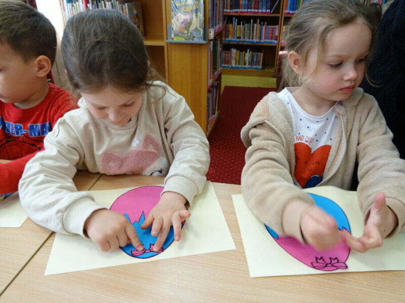 Zajęcia na temat zwyczajów i obrzędów ludowych charakterystycznych dla Wielkanocy (m.in. baranek, pisanki, lany poniedziałek). Podczas spotkania czytano książkę Małgorzaty Strzałkowskiej „Wielkanoc” oraz „Tradycyjna Wielkanoc. Zwyczaje, obrzędy, symbole”.