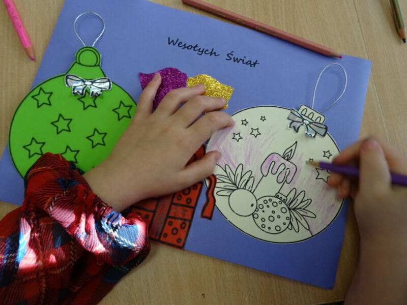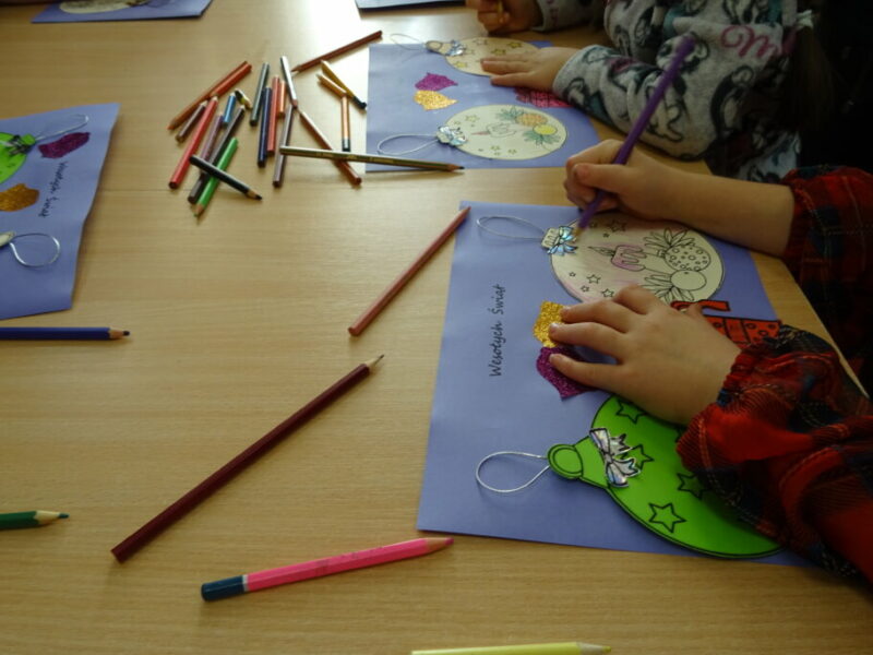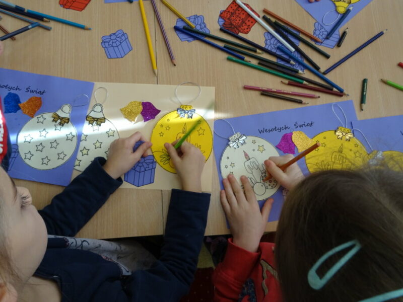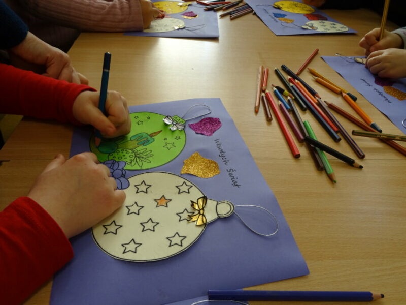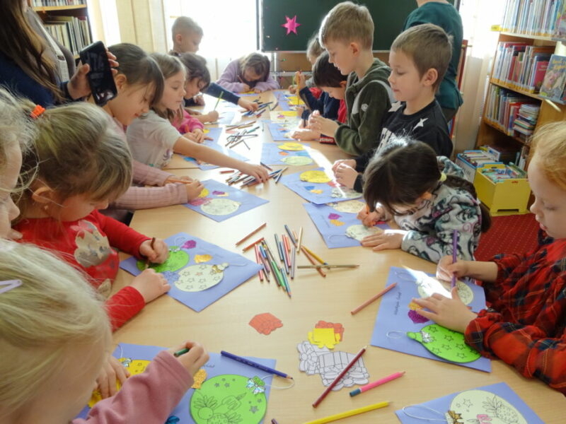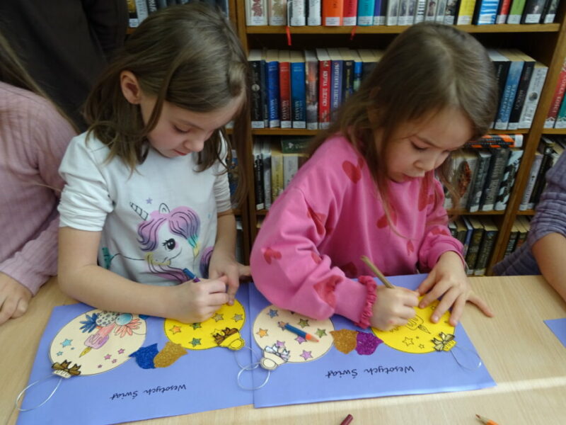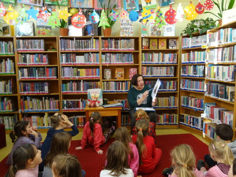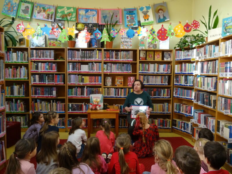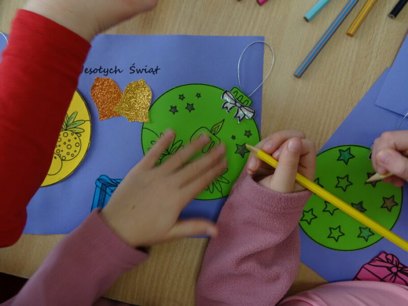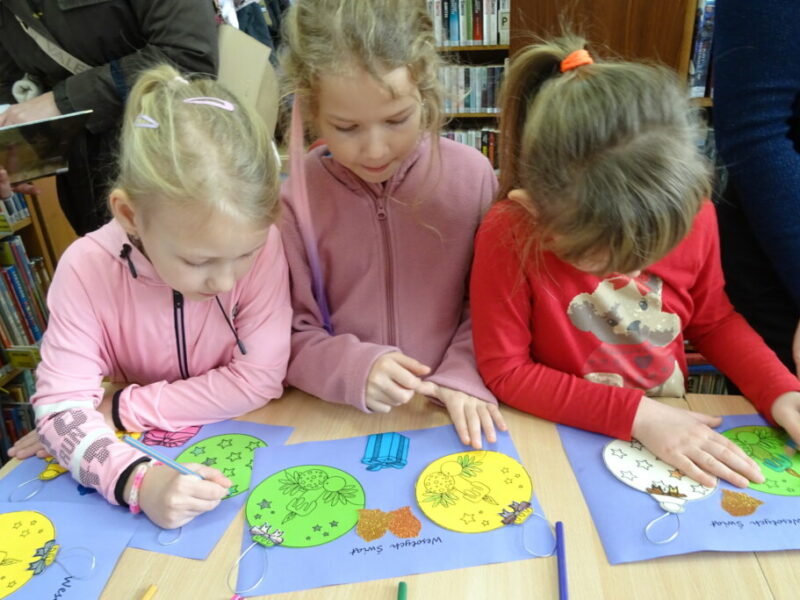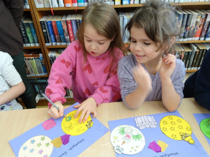 Dzieci poznawały historię świątecznego drzewka oraz podłaźniczki. Wspólnie odkrywały symbolikę tradycyjnych ozdób choinkowych, takich jak anielskie włosy, orzechy, jabłka i światełka. Podczas spotkania czytano i oglądano książkę „Najpiękniejsza choinka na świecie” Jane Chapman oraz „Magia świąt. Zwyczaje, ciekawostki, opowieści” autorstwa Małgorzaty Goździewicz i Agnieszki Skórzewskiej.
