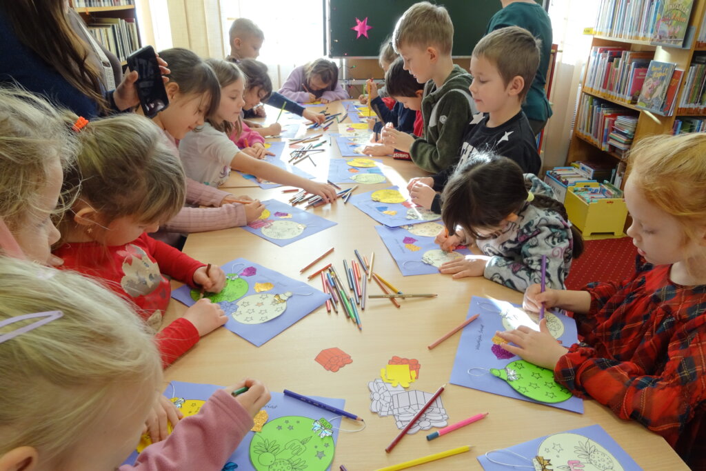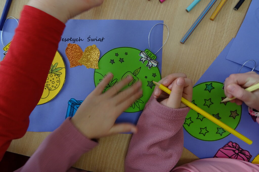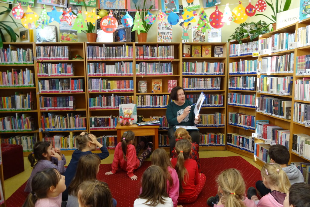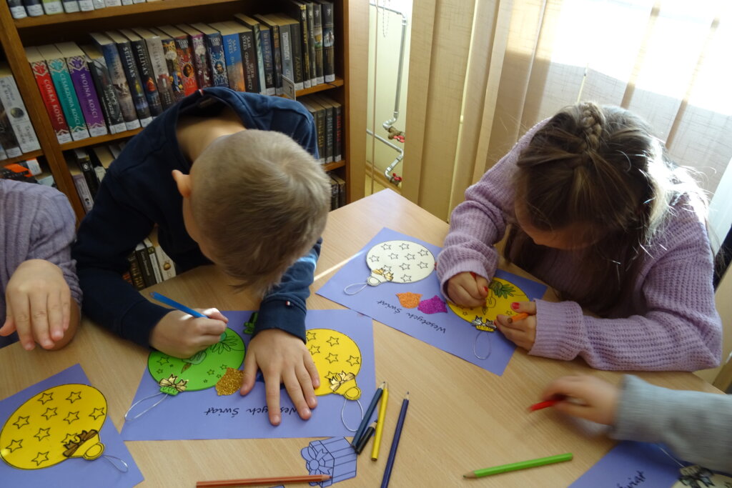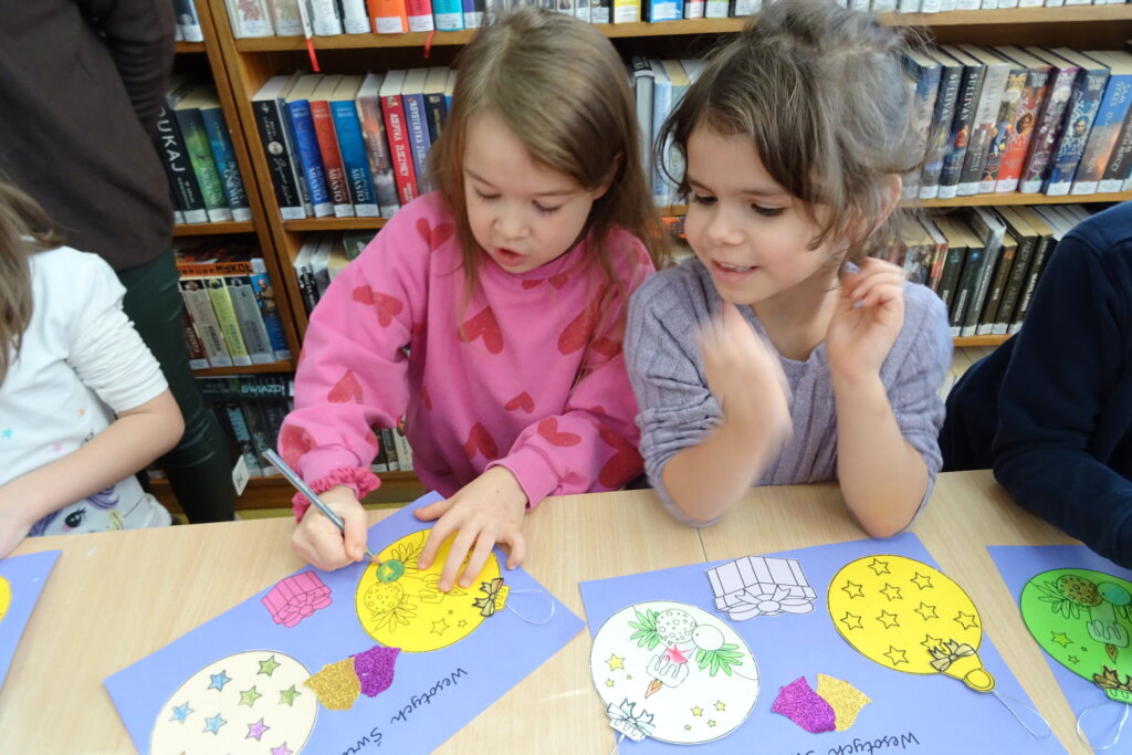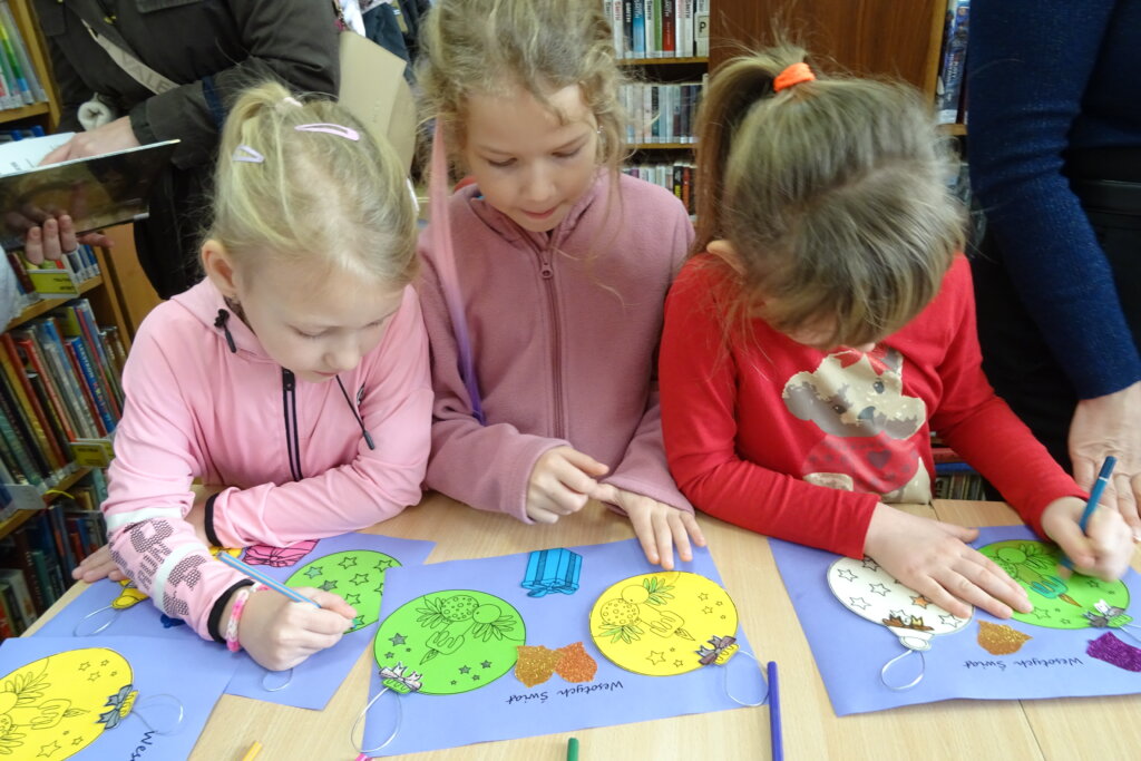 Dzieci poznawały historię świątecznego drzewka oraz podłaźniczki. Wspólnie odkrywały symbolikę tradycyjnych ozdób choinkowych, takich jak anielskie włosy, orzechy, jabłka i światełka. Podczas spotkania czytano i oglądano książkę „Najpiękniejsza choinka na świecie” Jane Chapman oraz „Magia świąt. Zwyczaje, ciekawostki, opowieści” autorstwa Małgorzaty Goździewicz i Agnieszki Skórzewskiej.