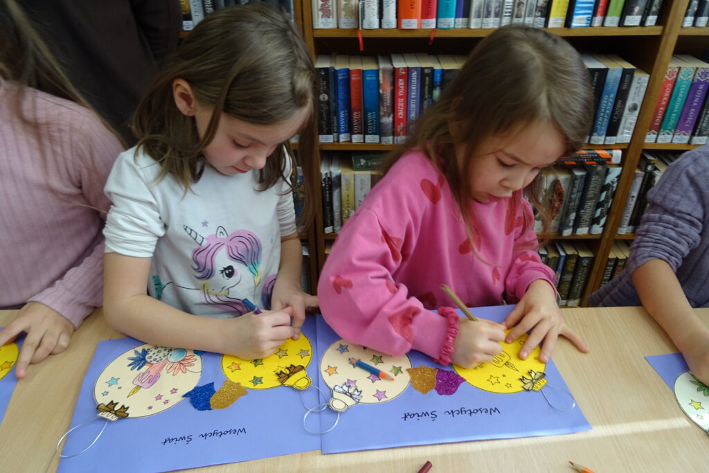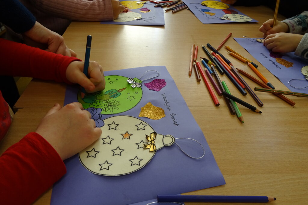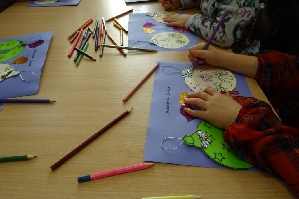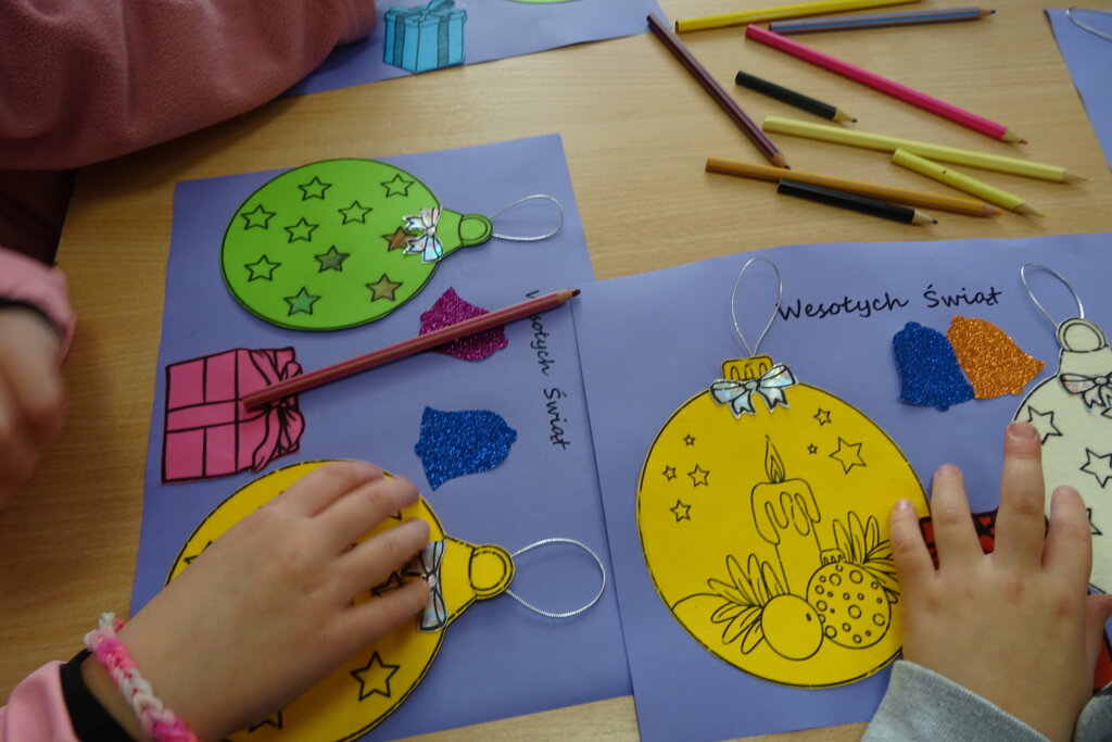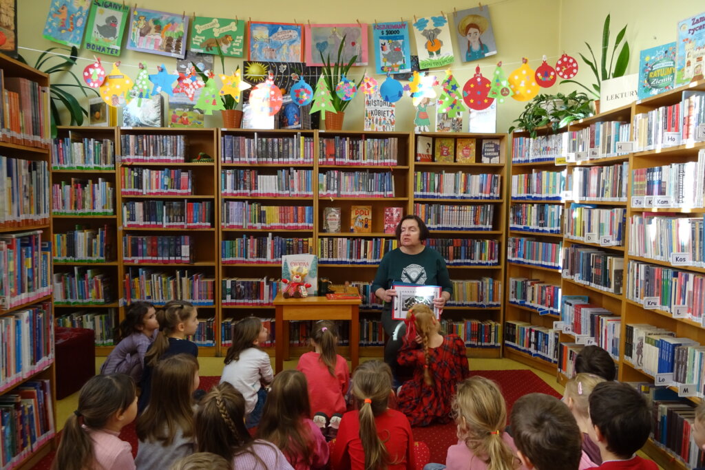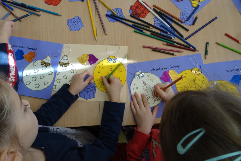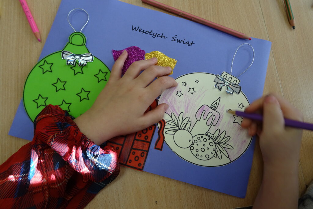 Dzieci poznawały historię świątecznego drzewka oraz podłaźniczki. Wspólnie odkrywały symbolikę tradycyjnych ozdób choinkowych, takich jak anielskie włosy, orzechy, jabłka i światełka. Podczas spotkania czytano i oglądano książkę „Najpiękniejsza choinka na świecie” Jane Chapman oraz „Magia świąt. Zwyczaje, ciekawostki, opowieści” autorstwa Małgorzaty Goździewicz i Agnieszki Skórzewskiej.