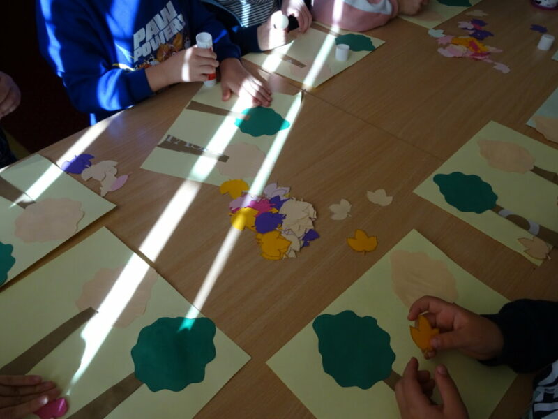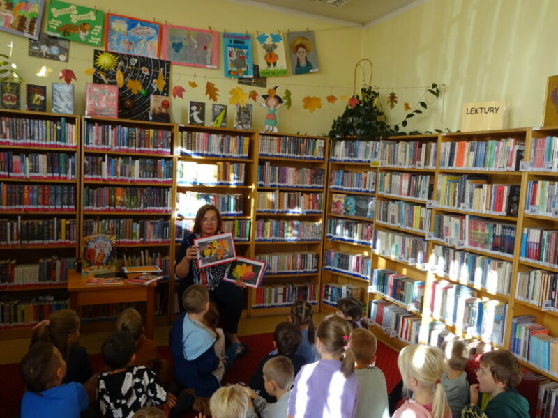 Zajęcia polegały na wspólnym opisywaniu zmian zachodzących w przyrodzie jesienią. Dzieci zapoznały się z pojęciami takimi jak: pogoda pod psem oraz złota polska jesień. Podczas spotkania czytano książki „Jestem przedszkolakiem. Jesień” Agnieszki Antosiewicz oraz „Sto wierszy na każdą okazję” w wyborze Aleksandry Michałowskiej.