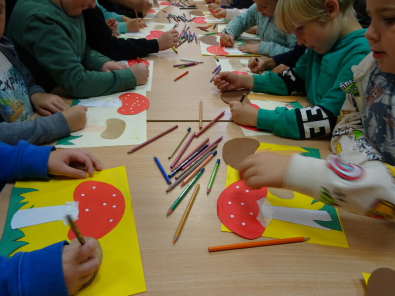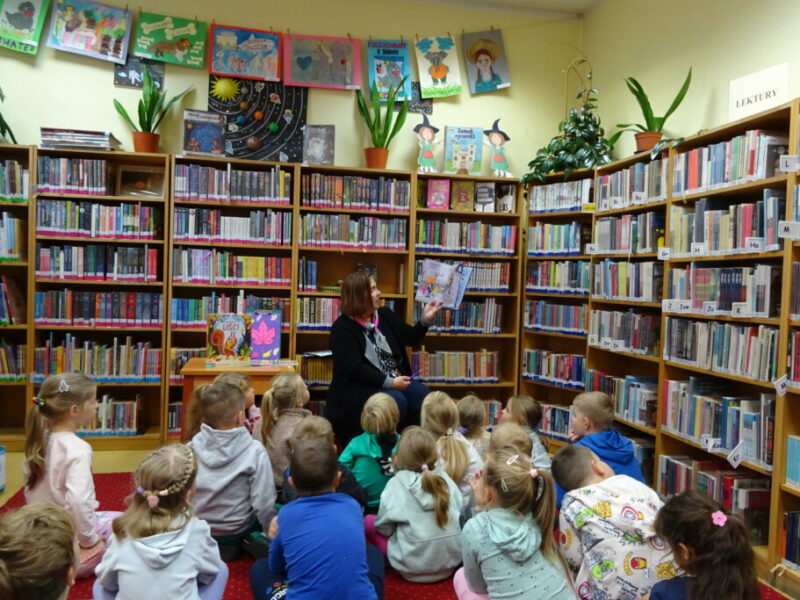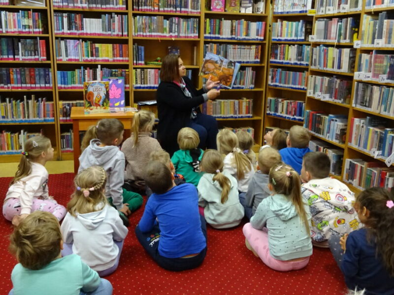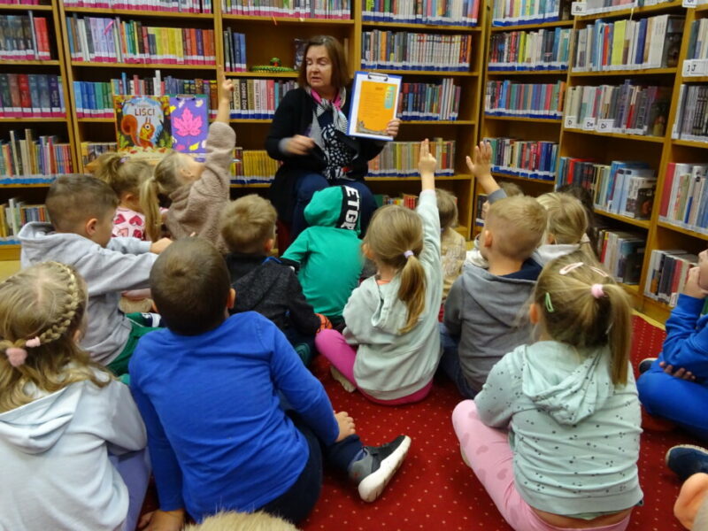 Zajęcia polegały na opisywaniu jesiennego lasu na podstawie własnych obserwacji. Podczas spotkania czytano książki „Złodziej liści” Alice Hemming oraz „Pory roku są fajne” Anny Korycińskiej.