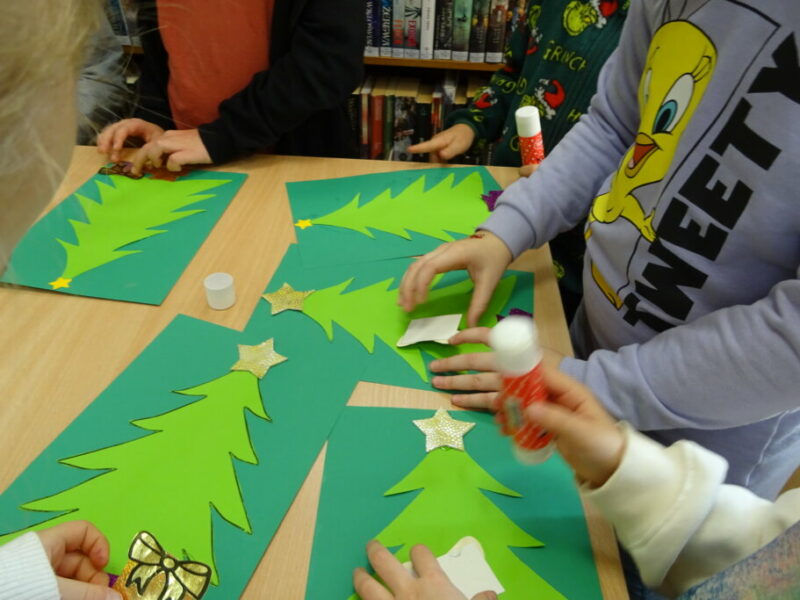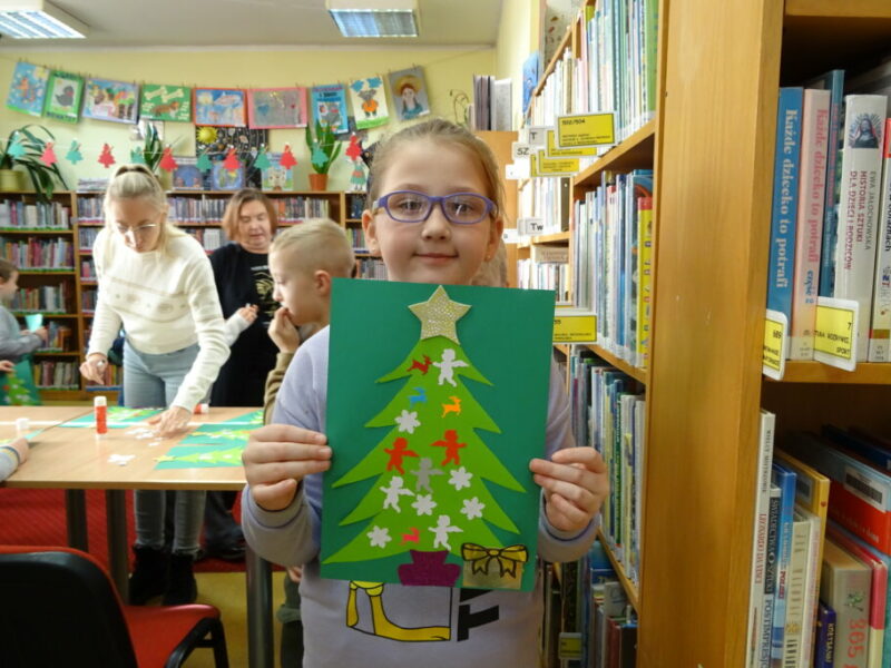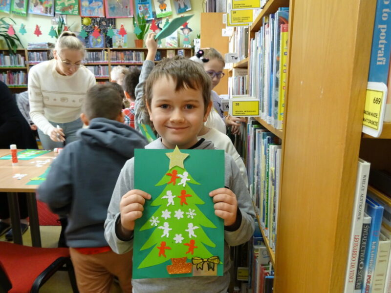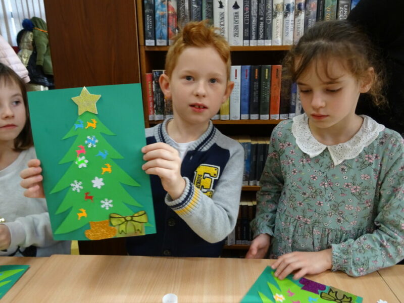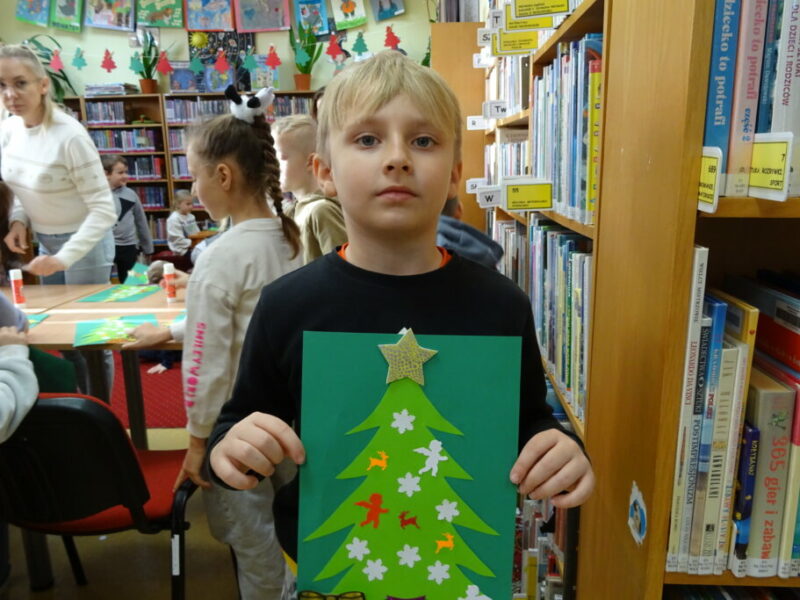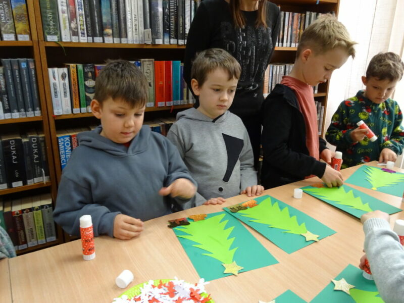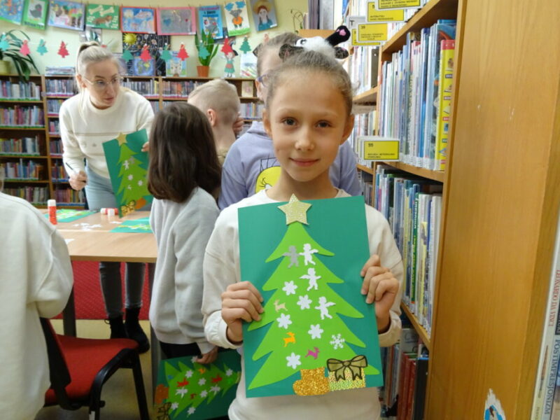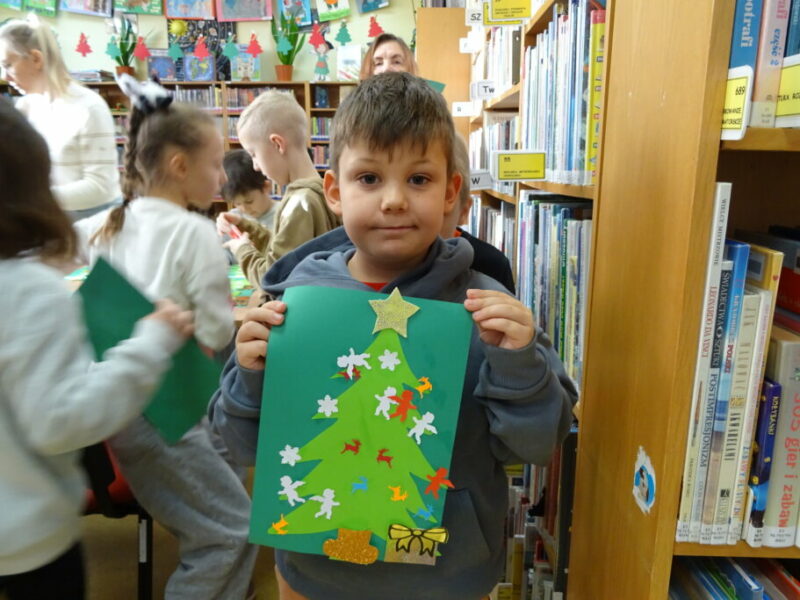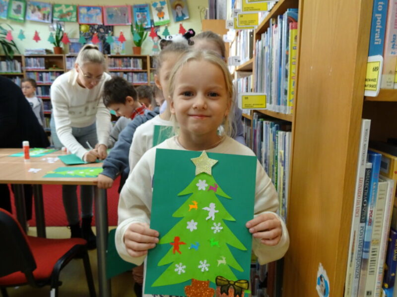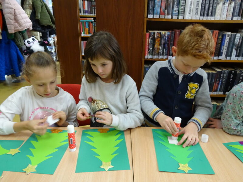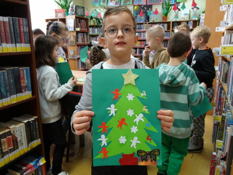 Podczas zajęć dzieci odkrywały tajemnice świątecznego drzewka oraz poznawały symbolikę tradycyjnych ozdób choinkowych: orzechów, jabłek, światełek. Podczas spotkania czytano książkę „Magia świąt. Zwyczaje, ciekawostki, opowieści” Małgorzaty Goździewicz i Agnieszki Skórzewskiej oraz legendę o Świętym Mikołaju.