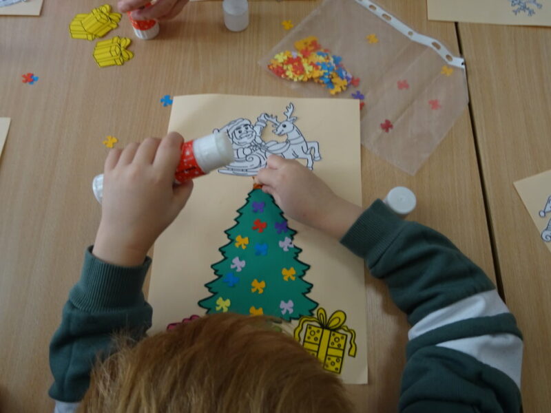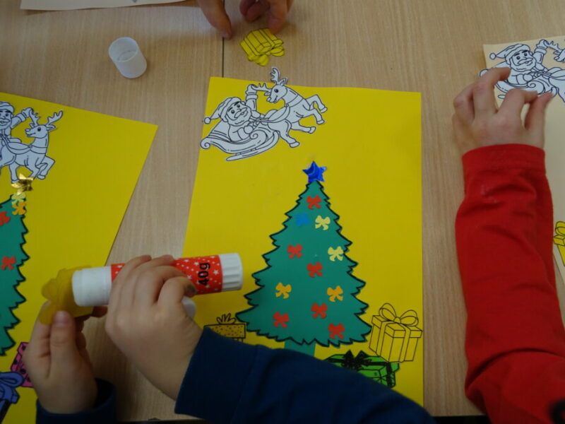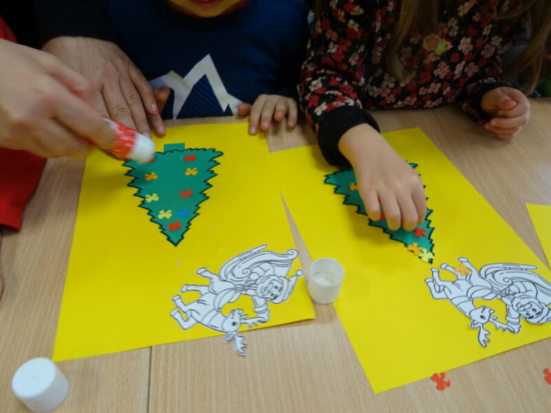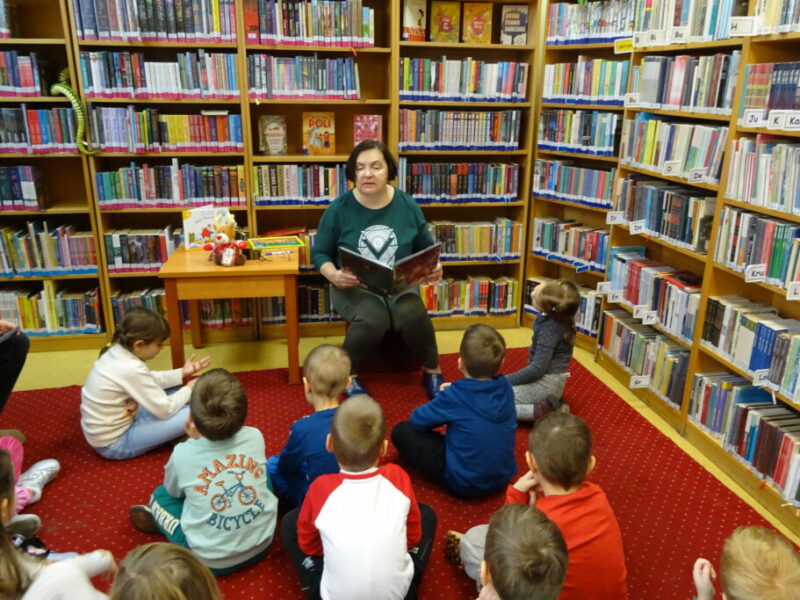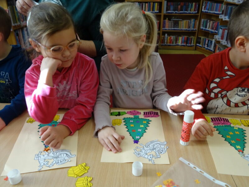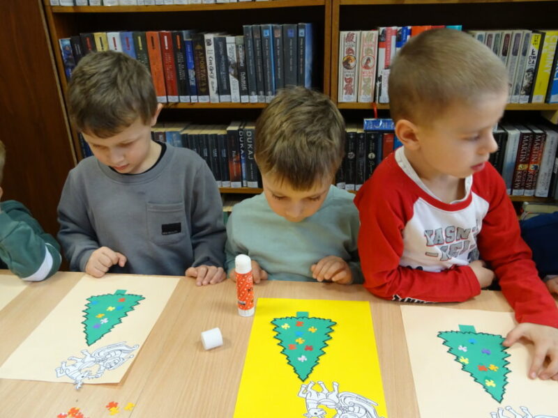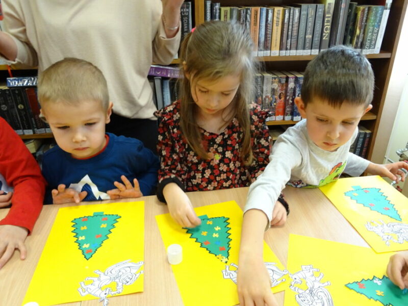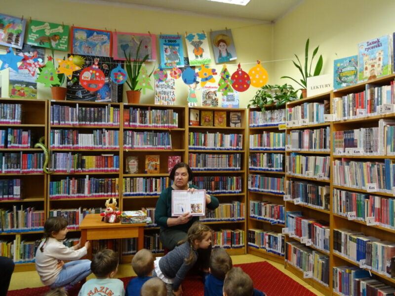 Zajęcia na temat tradycjach wigilijnych. Dzieci z zainteresowaniem słuchały opowieści o zwyczajach tego dnia i ich symbolice, takich jak pierwsza gwiazdka, sianko, opłatek czy dodatkowe miejsce przy stole. Podczas spotkania czytano książkę „Magia świąt. Zwyczaje, ciekawostki, opowieści” autorstwa Małgorzaty Goździewicz i Agnieszki Skórzewskiej.