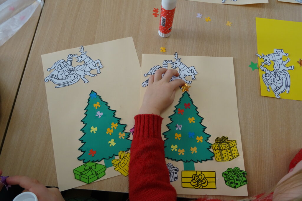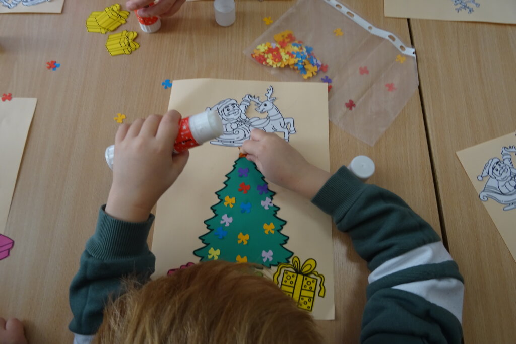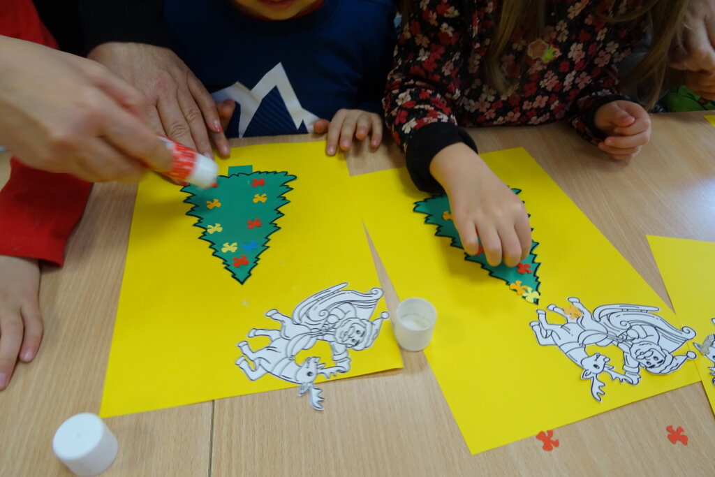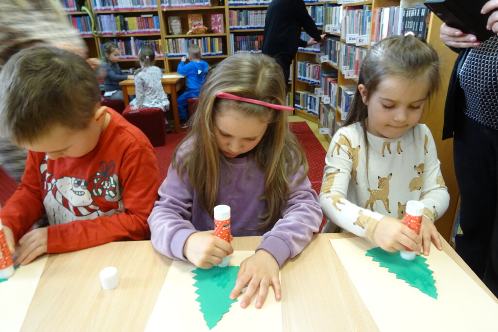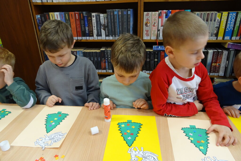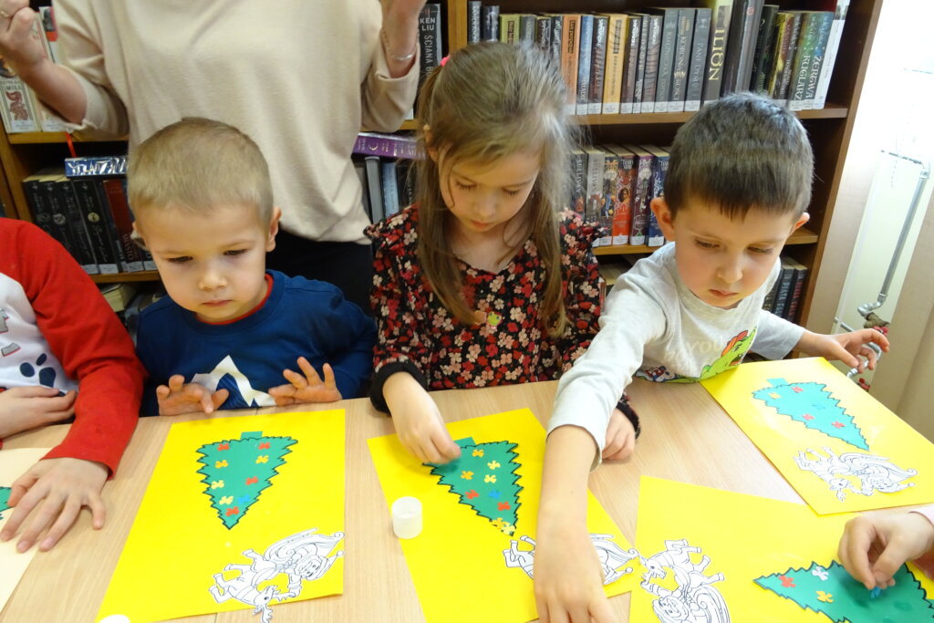 Zajęcia na temat tradycjach wigilijnych. Dzieci z zainteresowaniem słuchały opowieści o zwyczajach tego dnia i ich symbolice, takich jak pierwsza gwiazdka, sianko, opłatek czy dodatkowe miejsce przy stole. Podczas spotkania czytano książkę „Magia świąt. Zwyczaje, ciekawostki, opowieści” autorstwa Małgorzaty Goździewicz i Agnieszki Skórzewskiej.