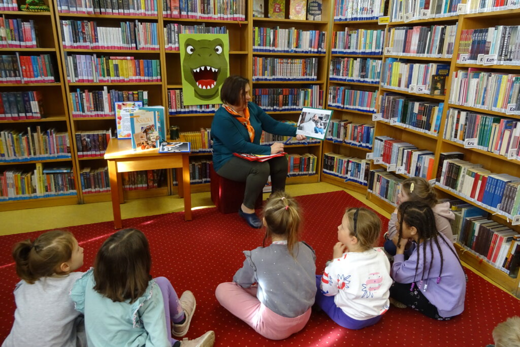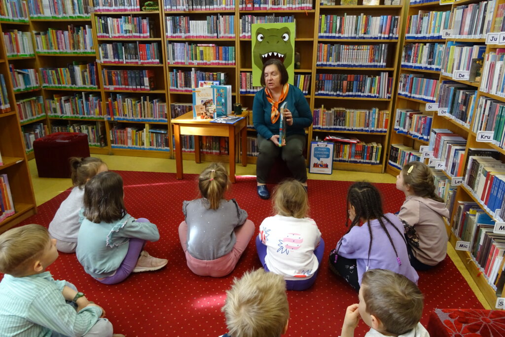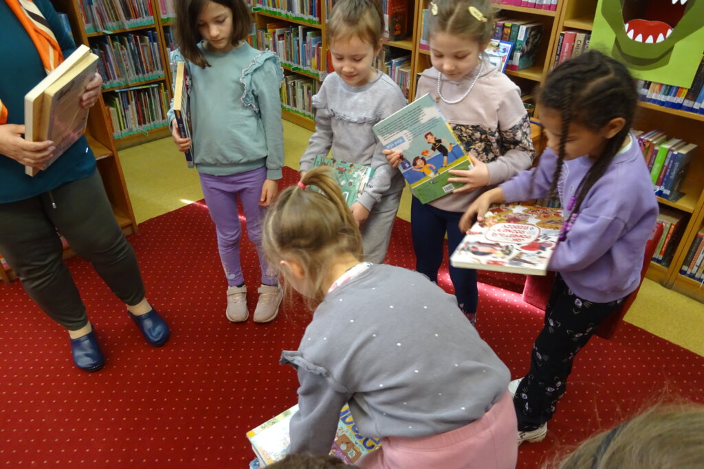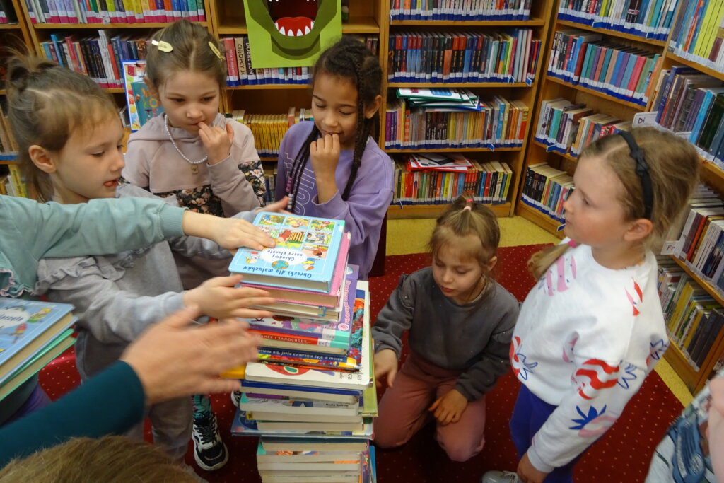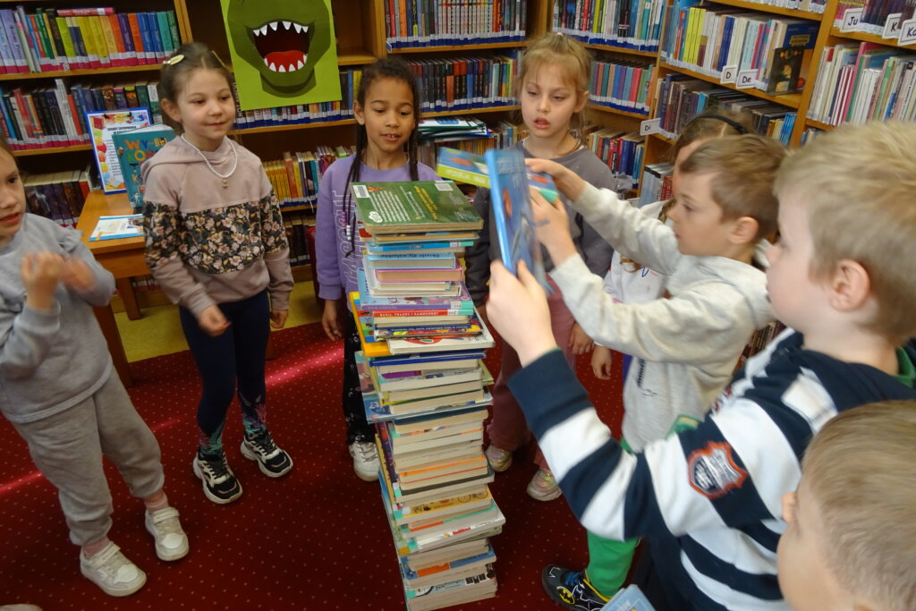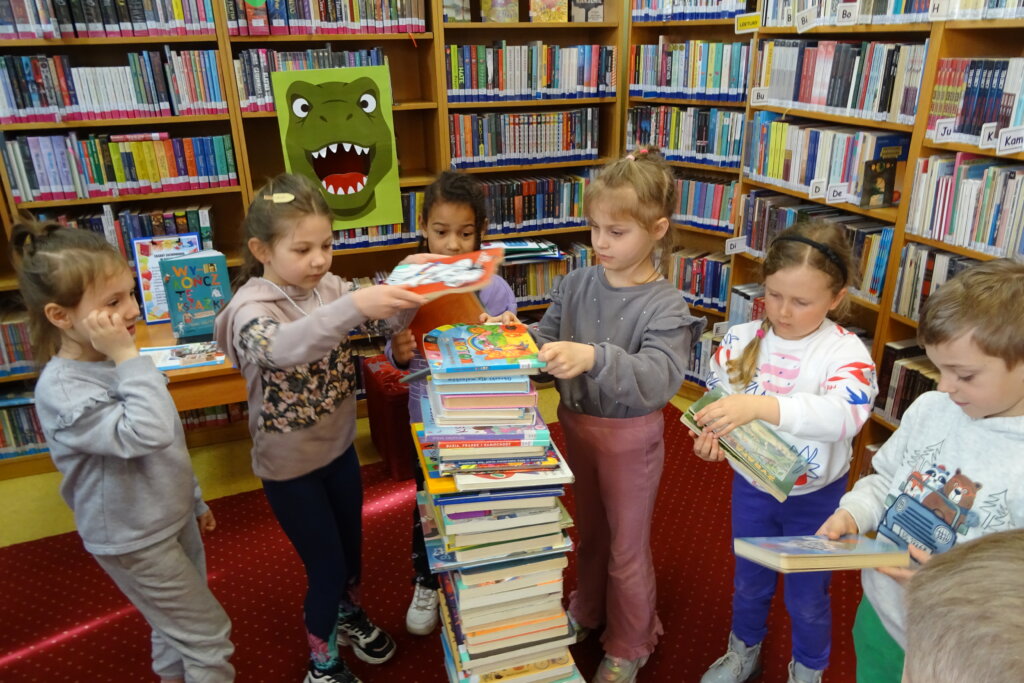 Podczas spotkania uczestnicy zapoznali się z biblioteką, jej zbiorami oraz regulaminem wypożyczalni i czytelni. Przedstawiono podstawowe elementy budowy książki oraz omówiono zasady dbania o publikacje. W części praktycznej grupa wspólnie zbudowała wieżę z książek, a następnie przeczytano fragmenty „Wy-kończ tę książkę” Keri Smith. Spotkanie zakończyło się samodzielnym wykonaniem zakładek.