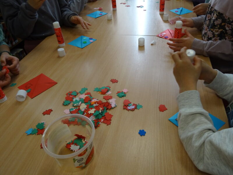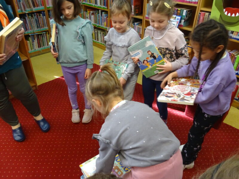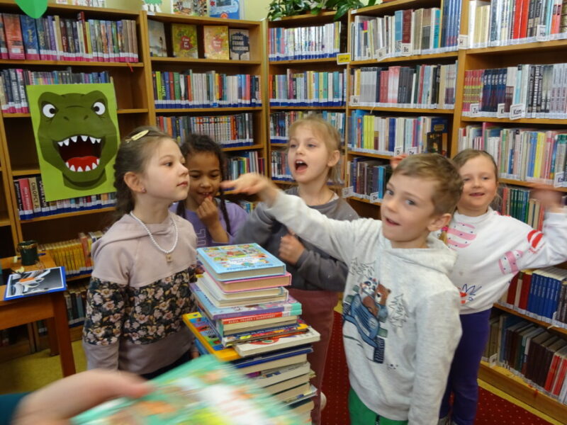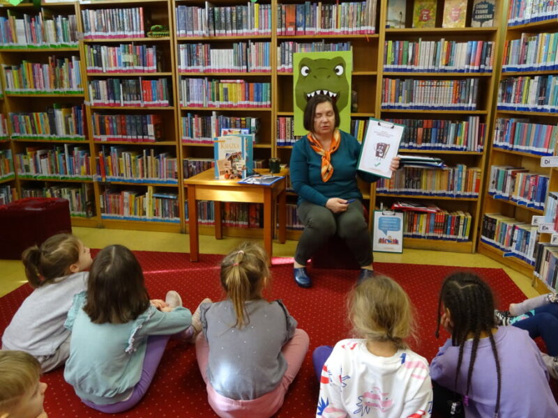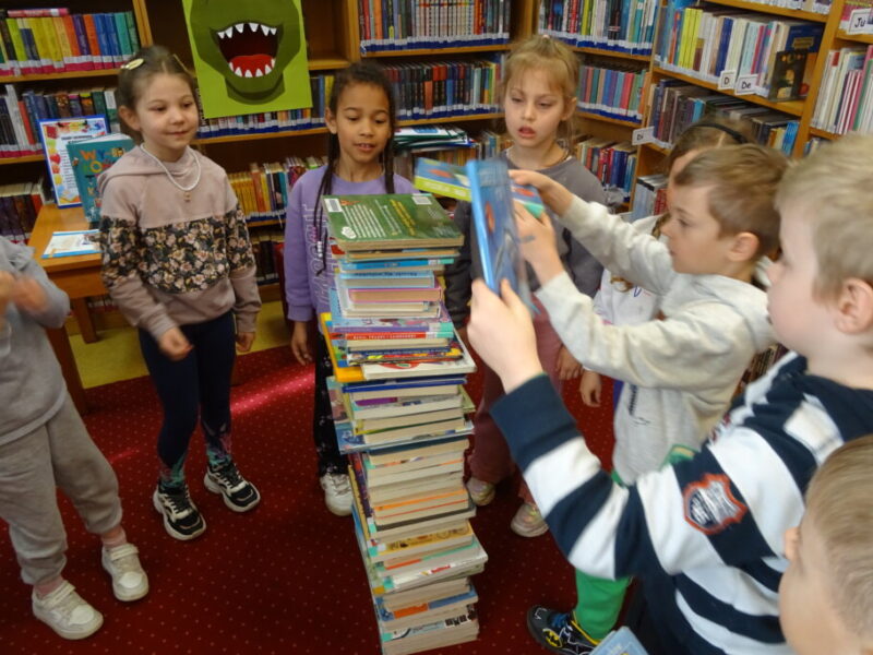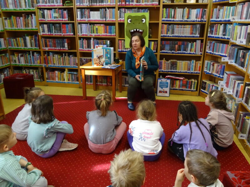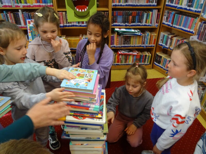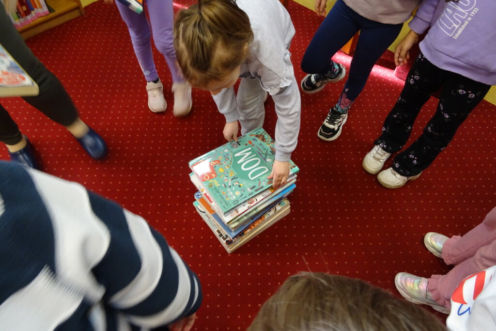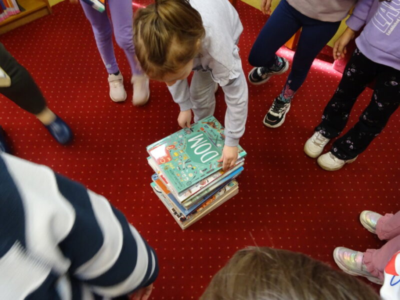 Podczas spotkania uczestnicy zapoznali się z biblioteką, jej zbiorami oraz regulaminem wypożyczalni i czytelni. Przedstawiono podstawowe elementy budowy książki oraz omówiono zasady dbania o publikacje. W części praktycznej grupa wspólnie zbudowała wieżę z książek, a następnie przeczytano fragmenty „Wy-kończ tę książkę” Keri Smith. Spotkanie zakończyło się samodzielnym wykonaniem zakładek.