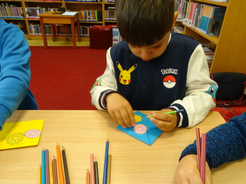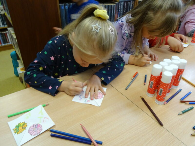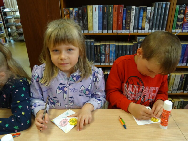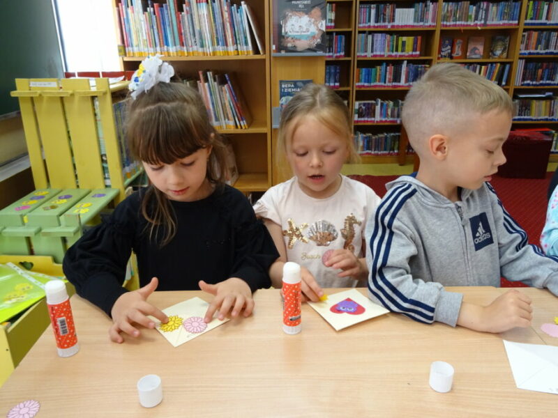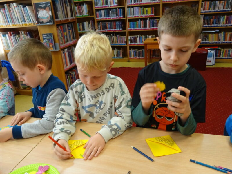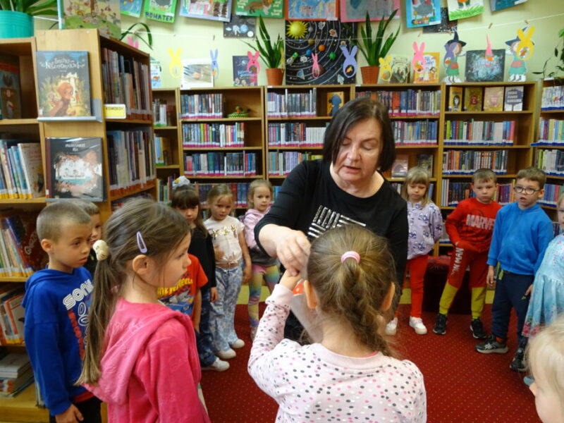 Dzieci z zapartym tchem chłonęły wiedzę o bibliotece, poznając zasady wypożyczania i postępowania z książkami. Kulminacyjnym punktem wizyty były kreatywne warsztaty, podczas których każde dziecko stworzyło unikalną zakładkę do książki.