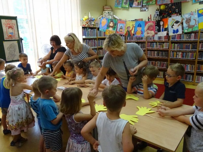 Dzieci z Niepublicznego Przedszkola Kacperek wysłuchały kilku opowiadań na temat niebezpieczeństw i zagrożeń z jakimi mogą się spotkać w czasie wakacyjnego  wypoczynku. Wykonały kolorowe prace plastyczne w kształcie rybki oraz podziękowały bibliotekarzowi za rok wspólnych zajęć.