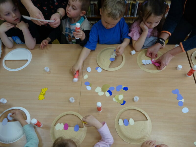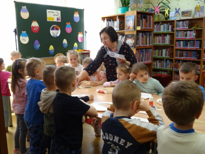 Zajęcia na temat zwyczajów i obrzędów ludowych charakterystycznych dla Wielkanocy (m.in. baranek, pisanki, lany poniedziałek). Podczas spotkania czytano książkę Małgorzaty Strzałkowskiej „Wielkanoc” oraz „Tradycyjna Wielkanoc. Zwyczaje, obrzędy, symbole”.