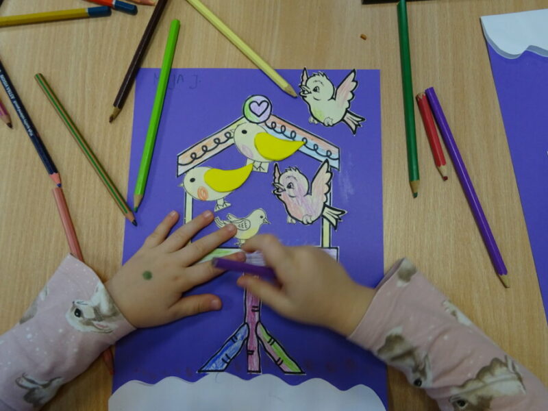 Dzieci z wielkim zainteresowaniem uczestniczyły w zajęciach poświęconych naszym skrzydlatym przyjaciołom. Przedszkolaki dowiedziały się, jak zwierzęta przygotowują się do zimy i dlaczego rozważne dokarmianie ptaków jest tak istotne.