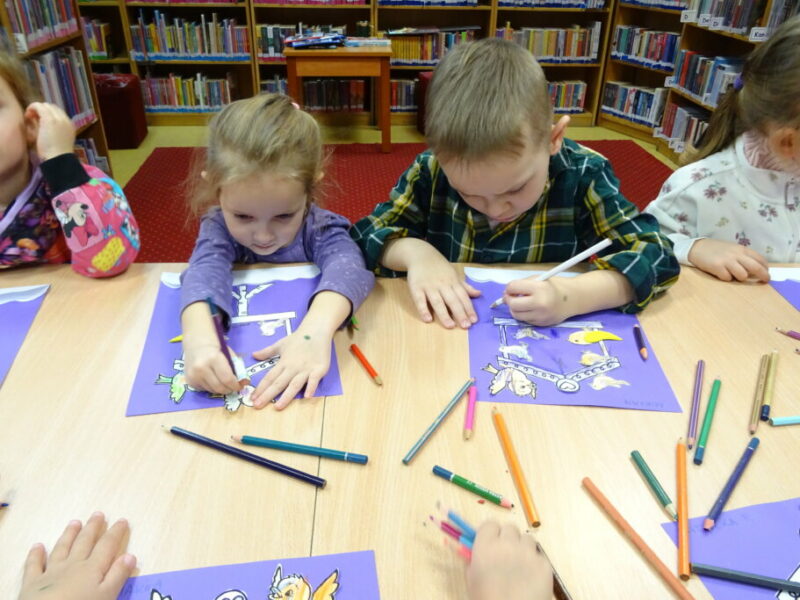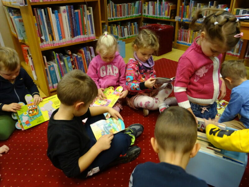 Podczas spotkania czytano i oglądano książki „Atlas zwierząt Polski” Roberta Dzwonkowskiego oraz „Jestem przedszkolakiem. Jesień” Agnieszki Antosiewicz.