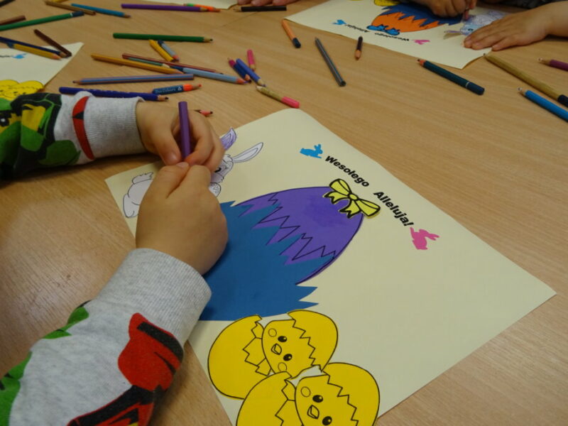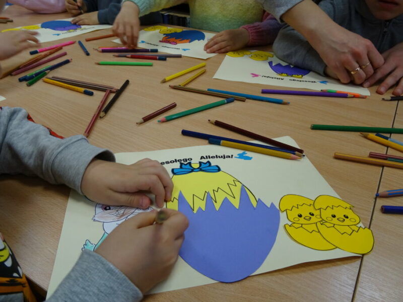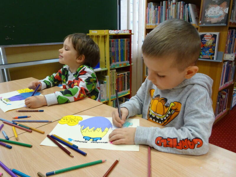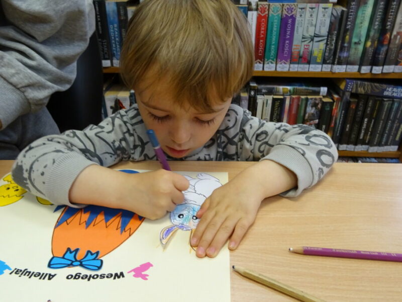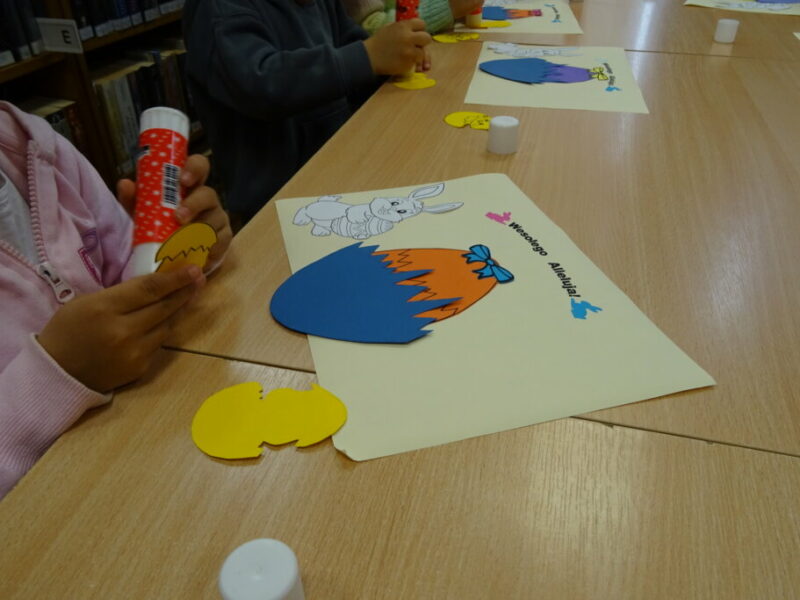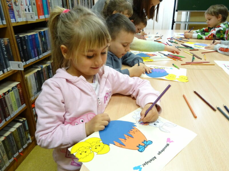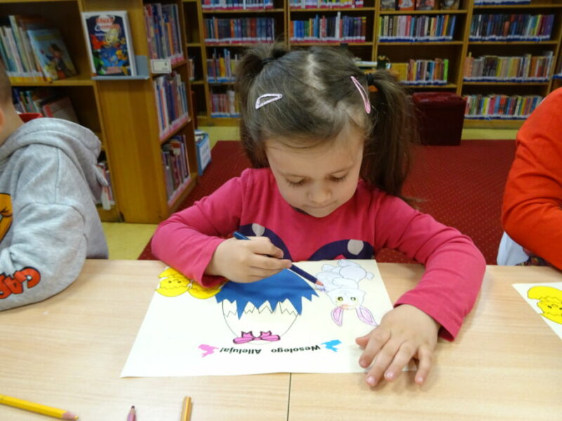 Dzieci zgłębiały temat zwyczajów wielkanocnych oraz poznały symbolikę zajączka, baranka, pisanek oraz lanego poniedziałku. Podczas spotkania czytano książkę Małgorzaty Strzałkowskiej „Wielkanoc” oraz „Tradycyjna Wielkanoc. Zwyczaje, obrzędy, symbole”.