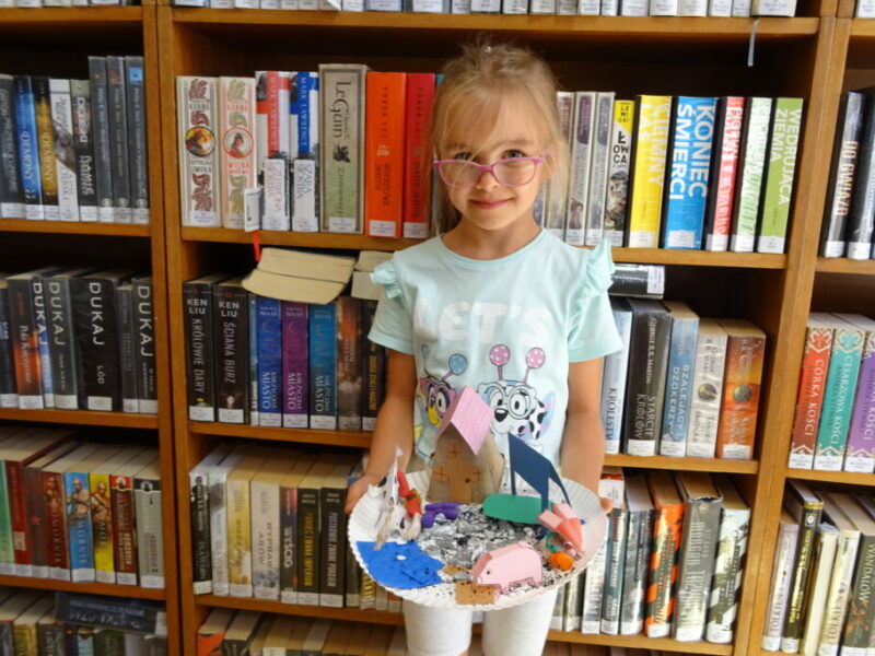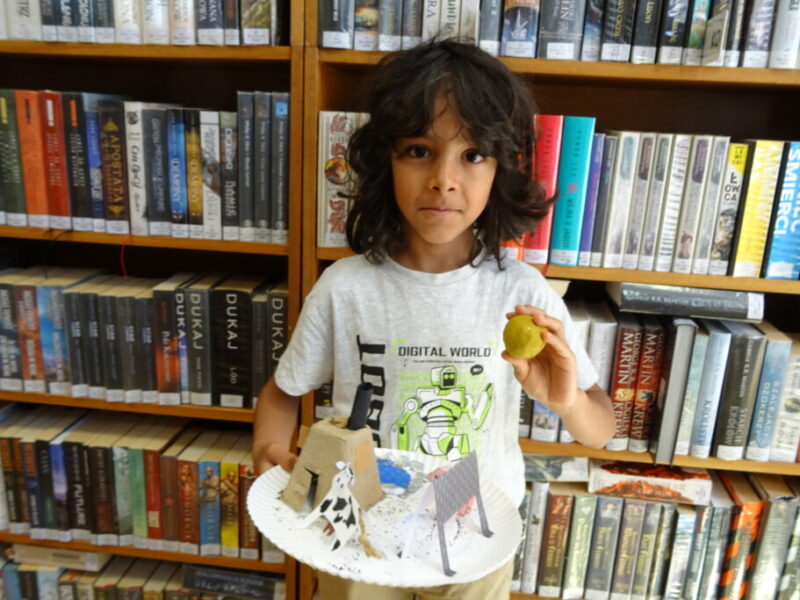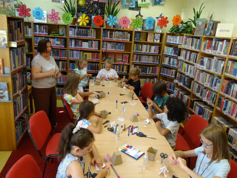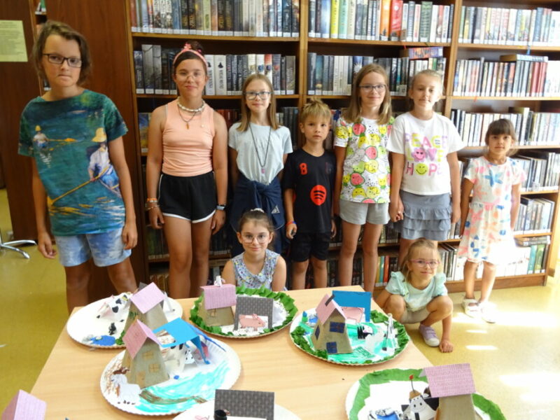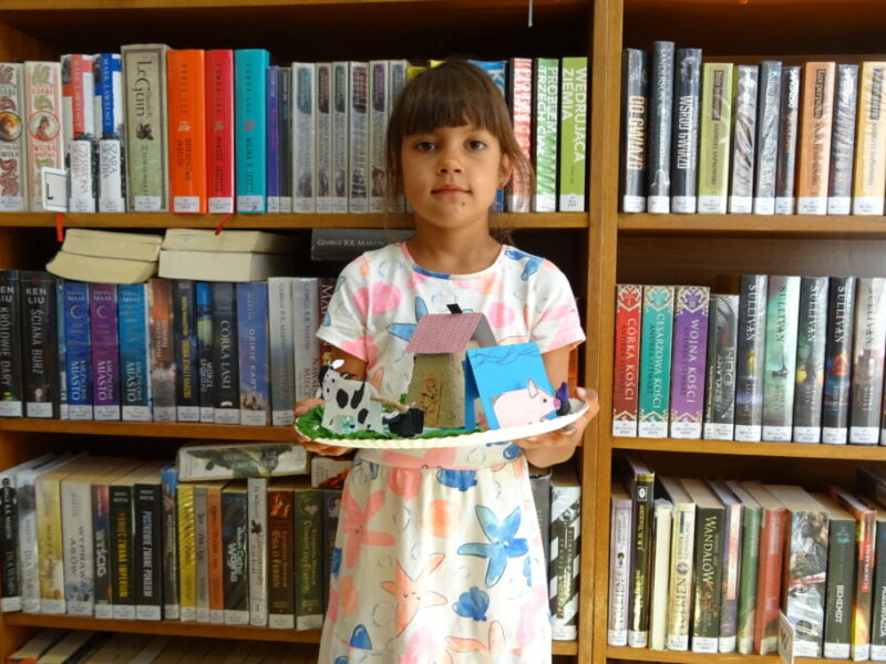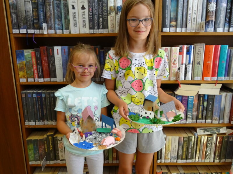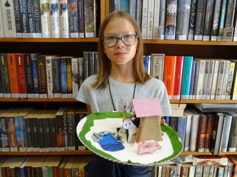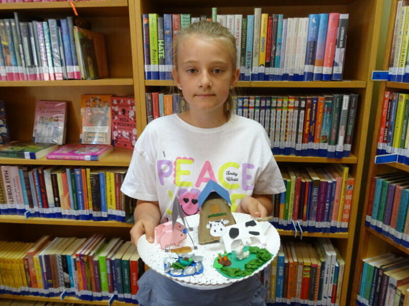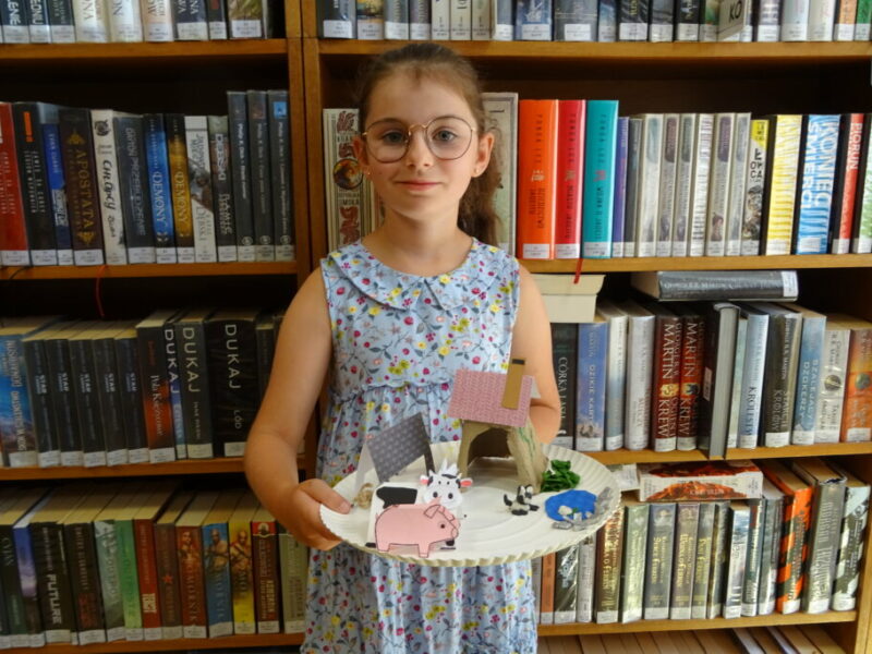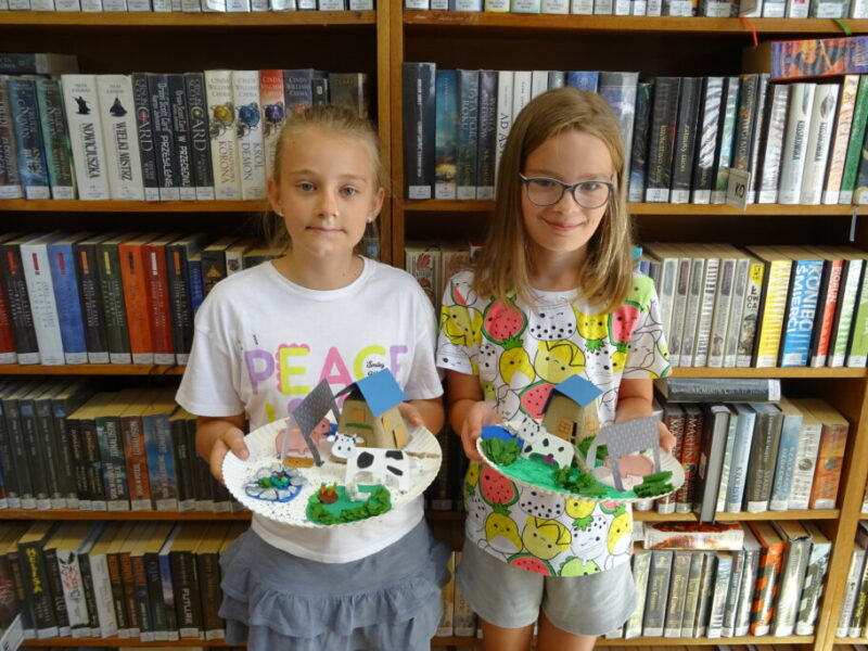 Za nami kolejne zajęcia w ramach letniego cyklu „Wakacje w bibliotece”. Tym razem uczestnicy spotkania zajęli się tematem „Wieś spokojna, wieś wesoła – wiejska zagroda”. W trakcie warsztatów rozmawiali o życiu na wsi, o codziennych obowiązkach gospodarskich oraz o zwierzętach hodowlanych. Następnie, w części plastycznej, każdy przygotował własną makietę zagrody, uzupełniając ją o różne zwierzęta i elementy gospodarstwa. Efektem były barwne, pomysłowe prace, które pokazały, jak dzieci wyobrażają sobie życie w wiejskim otoczeniu.