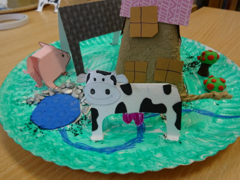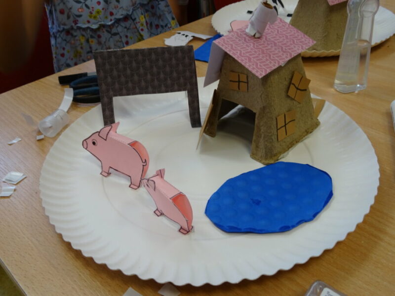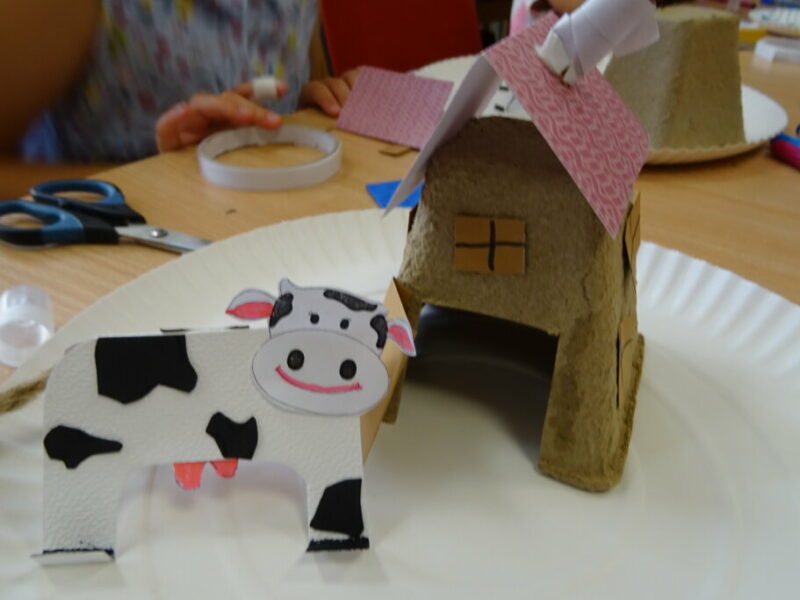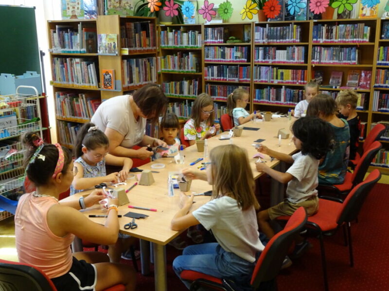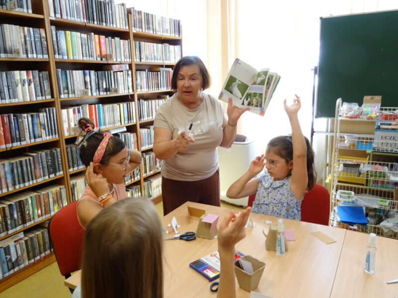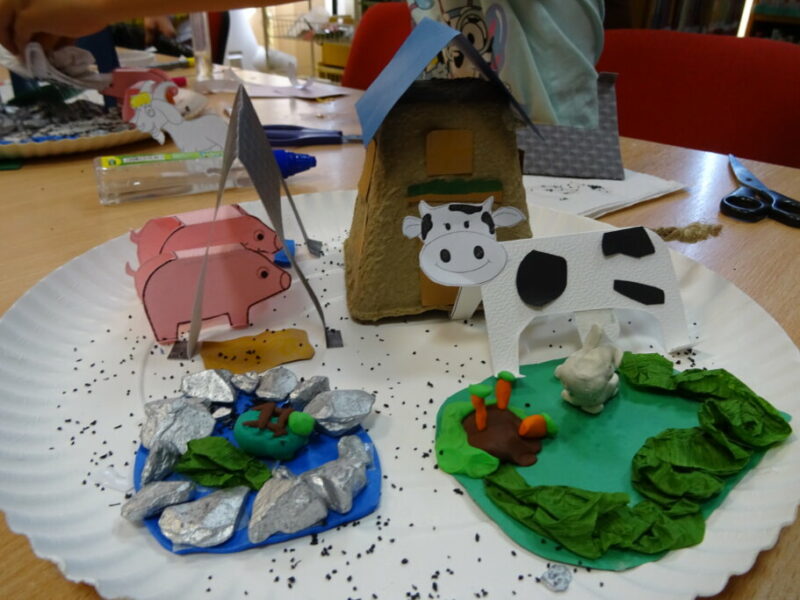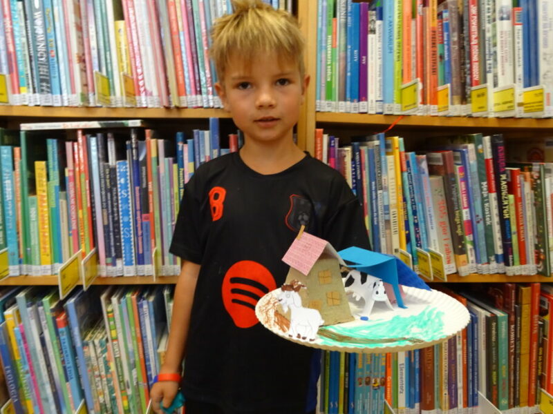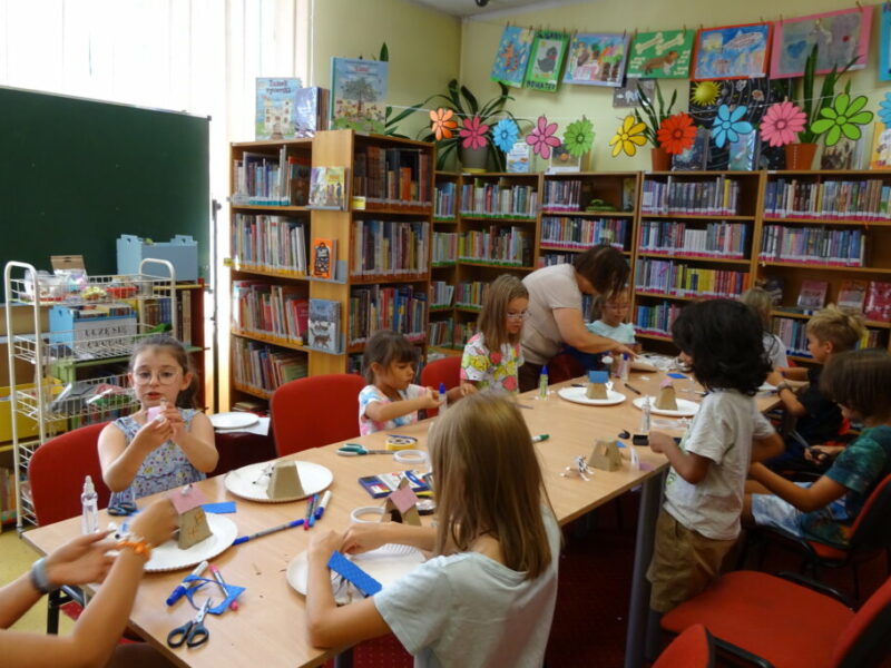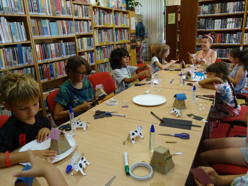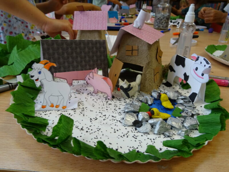 Za nami kolejne zajęcia w ramach letniego cyklu „Wakacje w bibliotece”. Tym razem uczestnicy spotkania zajęli się tematem „Wieś spokojna, wieś wesoła – wiejska zagroda”. W trakcie warsztatów rozmawiali o życiu na wsi, o codziennych obowiązkach gospodarskich oraz o zwierzętach hodowlanych. Następnie, w części plastycznej, każdy przygotował własną makietę zagrody, uzupełniając ją o różne zwierzęta i elementy gospodarstwa. Efektem były barwne, pomysłowe prace, które pokazały, jak dzieci wyobrażają sobie życie w wiejskim otoczeniu.