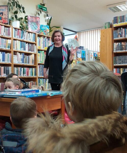Przedszkolaki zwiedziły bibliotekę, zapoznały się z zasadami korzystania i otrzymały kolorowe zakładki do książek.