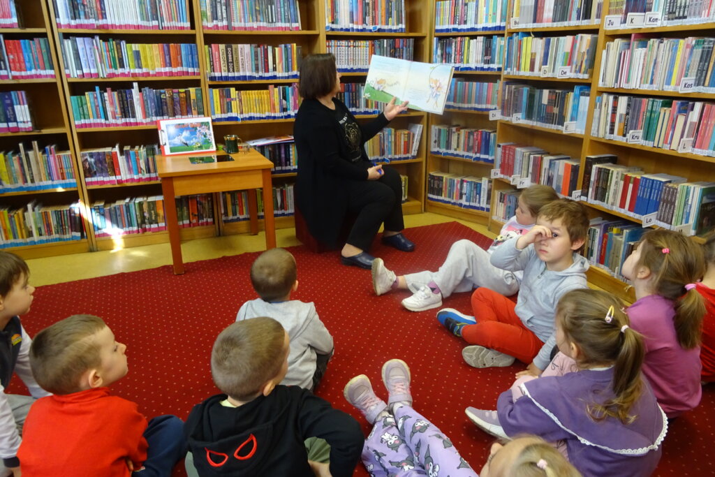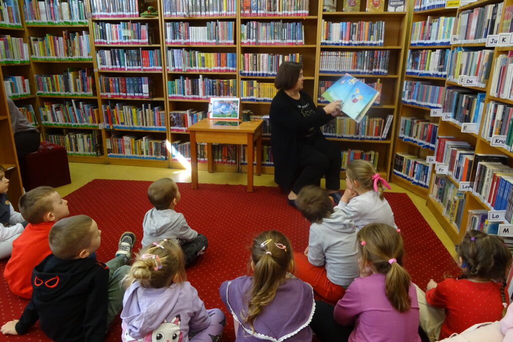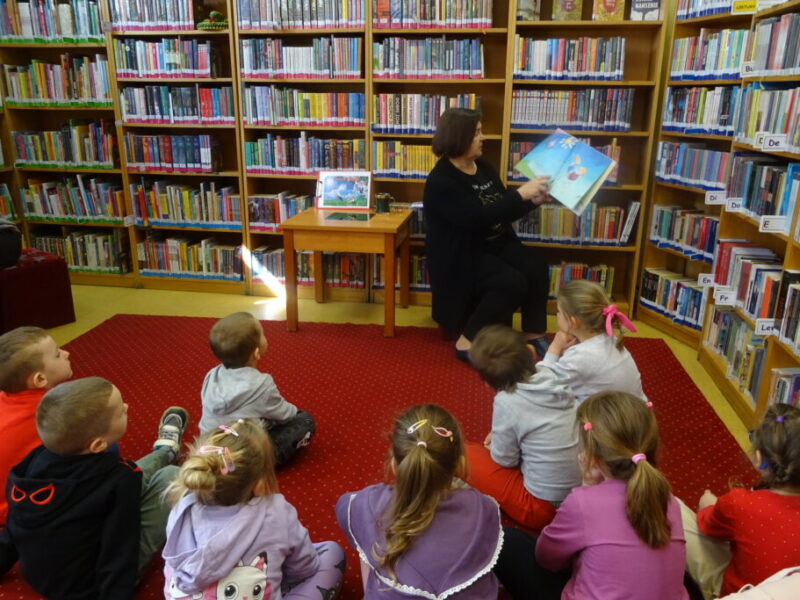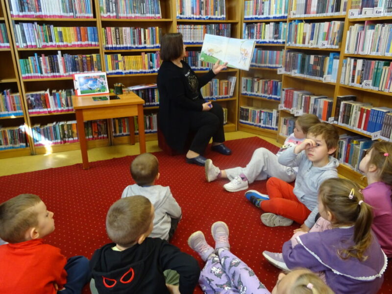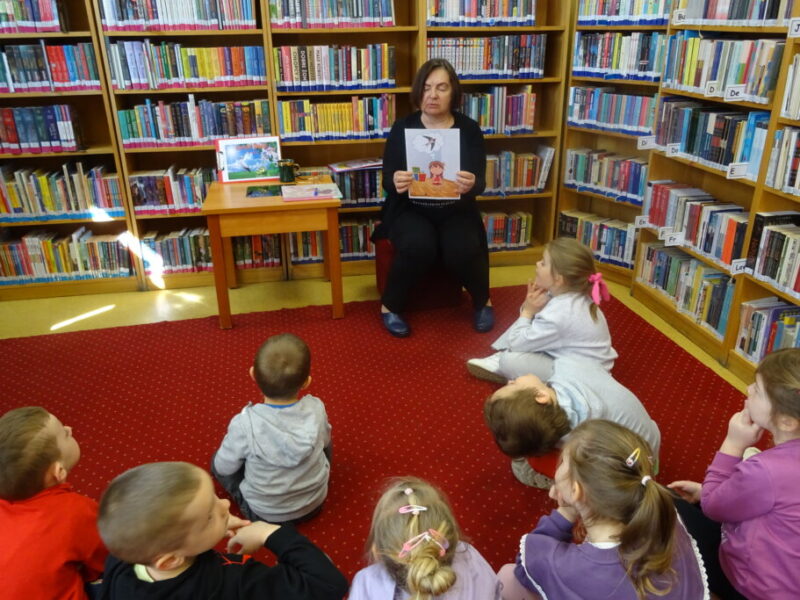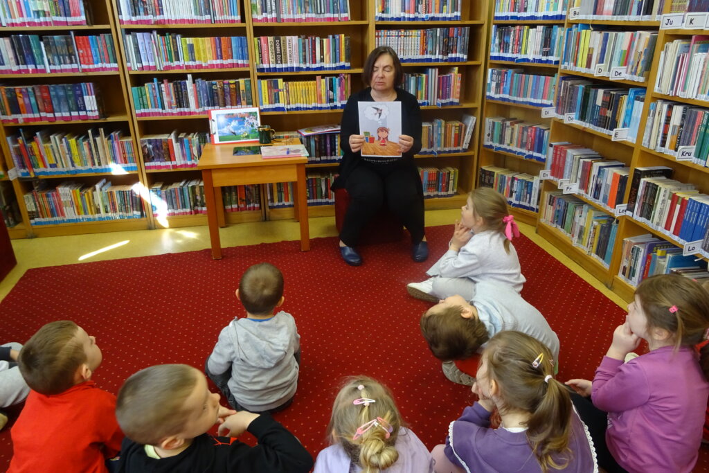 W trakcie wizyty w bibliotece przedszkolaki zgłębiały wiedzę o wiośnie. Korzystając z barwnych ilustracji, dzieci uczyły się rozpoznawać pierwsze zwiastuny nowej pory roku: krokusy, przebiśniegi i pierwiosnki. Nie zabrakło też rozmów o powracających ptakach – bocianach i skowronkach. Spotkanie zwieńczyła wspólna lektura książki Isabel Abedi pt. „Alberta szuka miłości”.