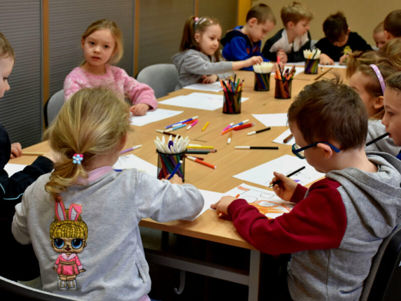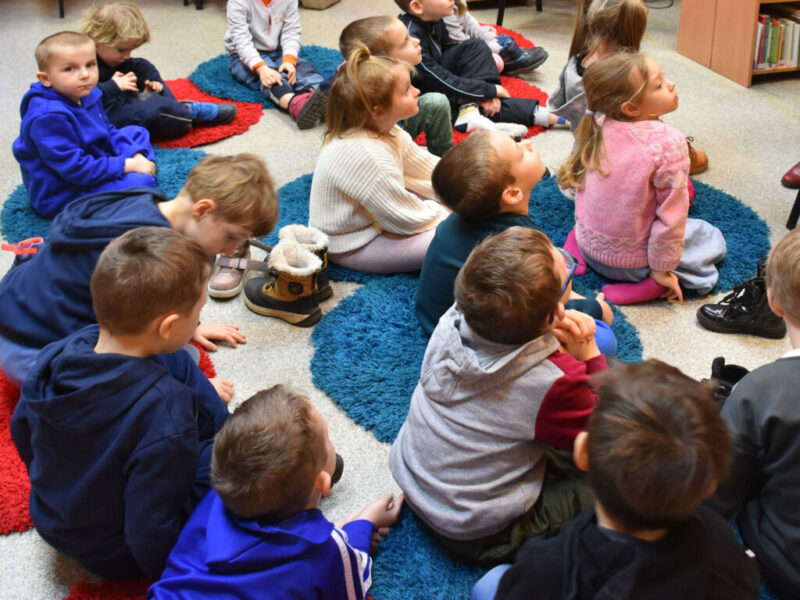 Motylki z Przedszkola nr 10, jak wszystkie dzieci ,bardzo lubią legendy, stare opowieści i historie związane z naszym pięknym regionem. Przyszły do nas, by ich posłuchać. Baśń „Duchy na Chojniku”, która została im przeczytana, została bardzo entuzjastycznie przyjęta przez przedszkolaki.  W dalszej części zajęć powstały piękne prace o zaprezentowanej tematyce.
