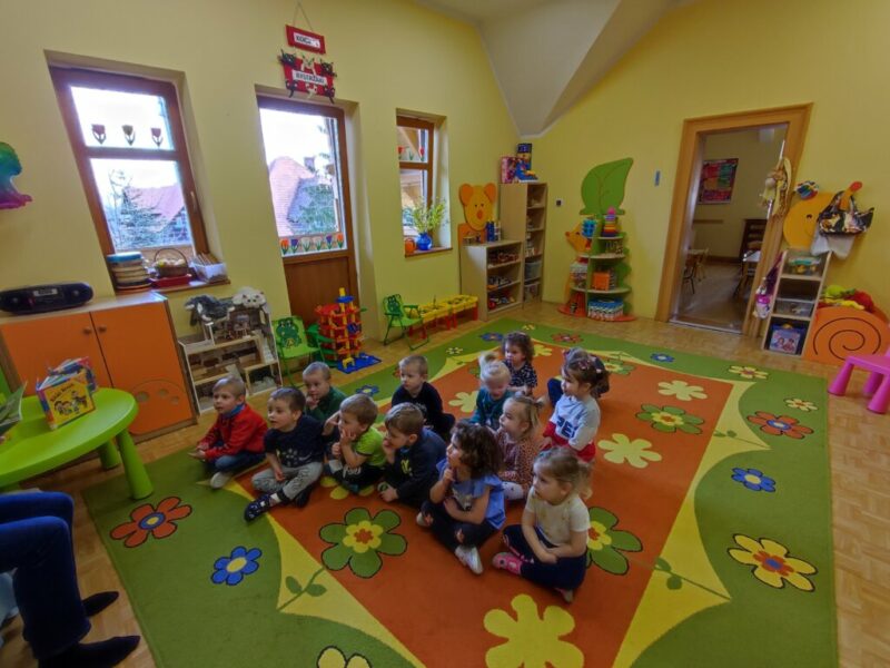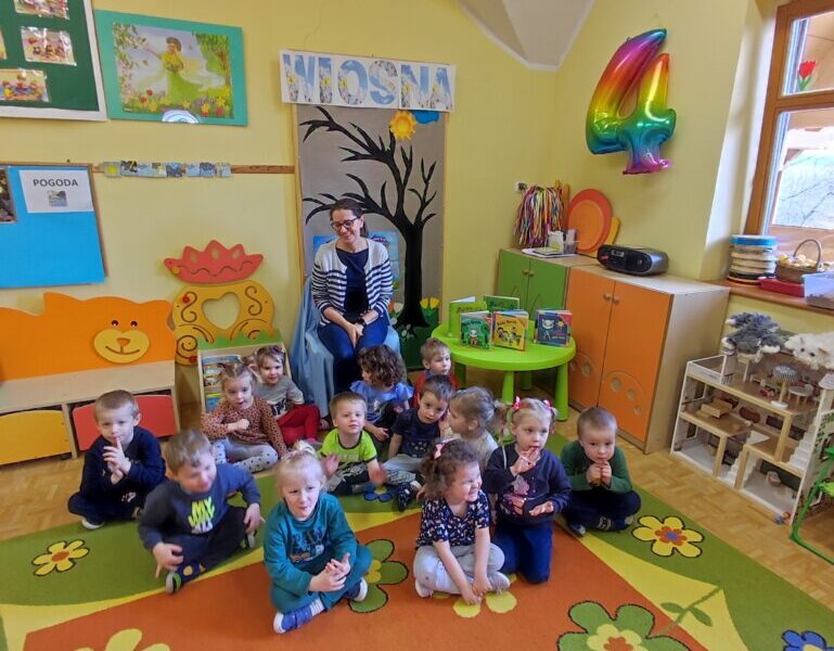 W bibliotece jest bardzo miło, ale najbardziej cieszą wizyty w przedszkolu. Najmłodsza grupa z Przedszkola nr 11 przysłała zaproszenie na czytanie o Kici Koci. W kolorowych wnętrzach przedszkola, nawet zwykłe czytanki wydają się niezwykłe. Uśmiechnięte buzie maluchów mówią wszystko, dzieci uwielbiają słuchać pięknych historii.