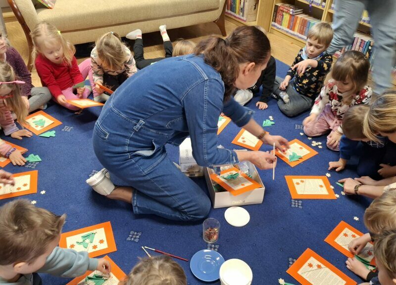Zajęcia, podczas których dzieci dowiedziały się, jak ważne jest dzielenie się i niesienie pomocy potrzebującym zwłaszcza w okresie świątecznym. W trakcie spotkania czytano książkę Davida Bedforda „Gdzie jest Mikołaj?”.