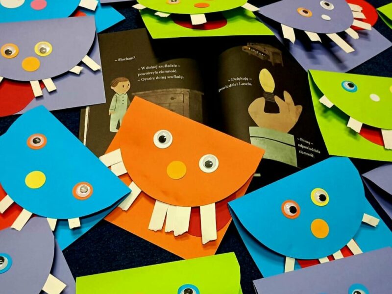 Zajęcia na temat lęków i fobii oraz sposobów radzenia sobie z nimi. Podczas spotkania czytano książkę Doroty Gellner „Duszki, stworki i potworki”.