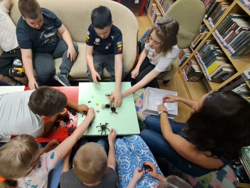 Jeszcze przed wakacjami udało się wznowić współpracę ze Specjalny Ośrodek Szkolno – Wychowawczy SPU w Jeleniej Górze. Uczniowie klas 1/2 i 2/3 odwiedzili Filię 8 i poznali historię Gryźka – rozgniewanego pająka.