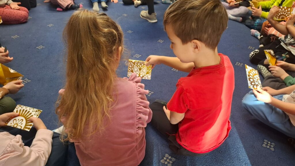Zajęcia rozwijające umiejętność asertywnego wyznaczania granic oraz budowania pozytywnych relacji w kontaktach rówieśniczych. Dzieci słuchały fragmentów książki „Franek i trudna przyjaźń” Kasi Keller.