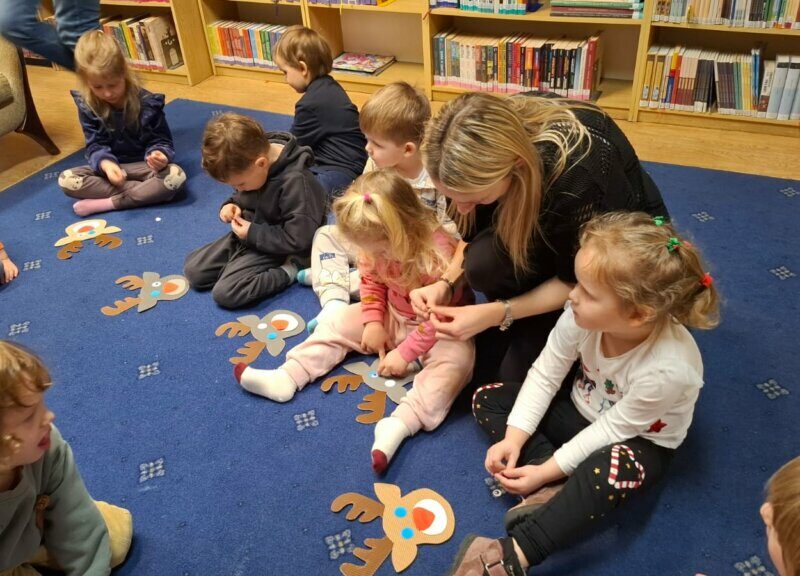 Zajęcia o tym, jak ważna jest wspólnota i wrażliwość na potrzeby innych nie tylko w czasie świąt. Podczas spotkania czytano książkę „Choineczka. Zimowa opowieść z odrobiną magii”.