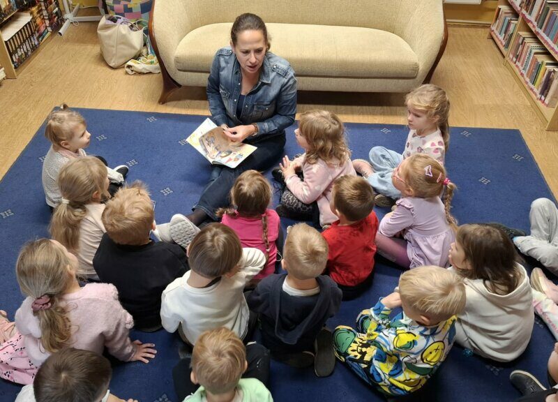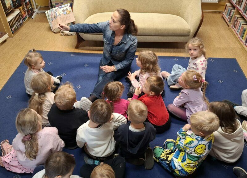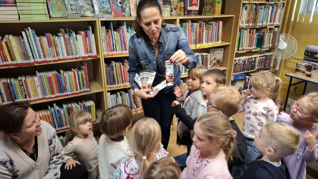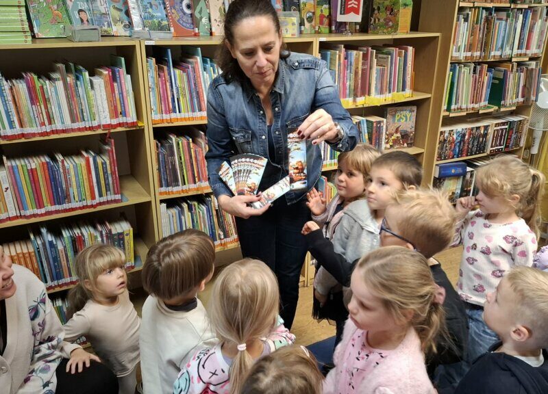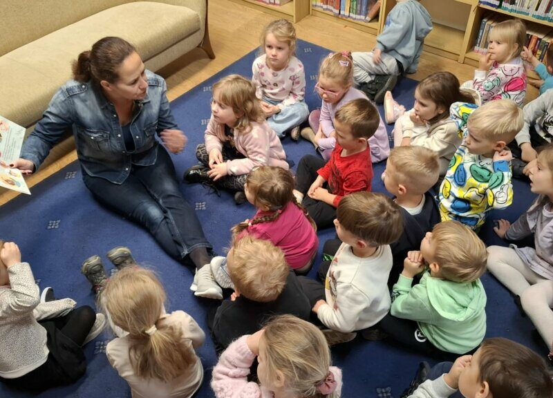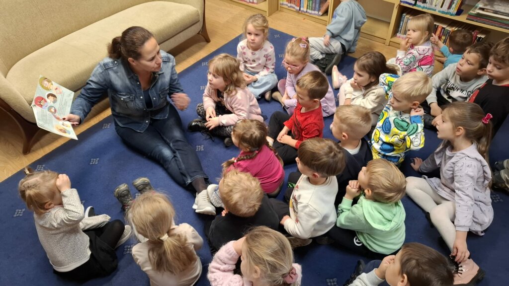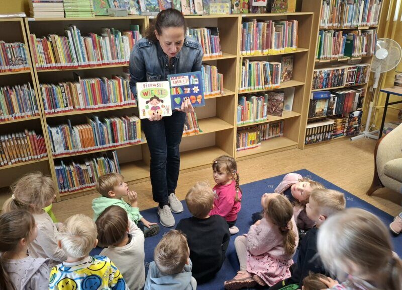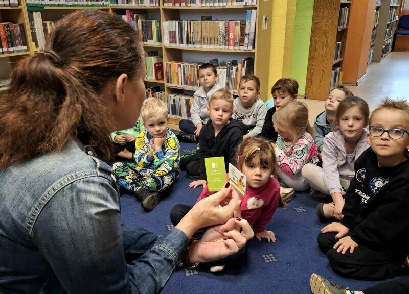 Prezentacja biblioteki oraz jej zbiorów. Zapoznanie z zasadami korzystania z wypożyczalni. Promocja programu „Mała książka – wielki człowiek”.