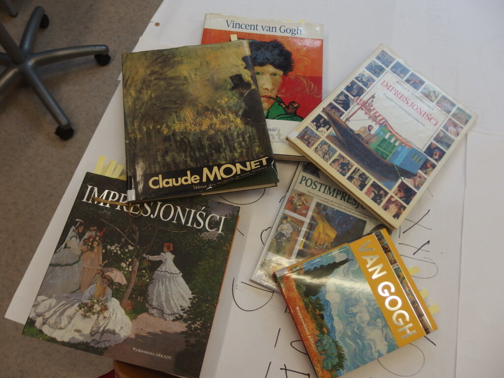 Książki „Impresjoniści” i „Vincent van Gogh Życie i twórczość” z Wydawnictwa Arkady były inspiracją do dzisiejszych zajęć.