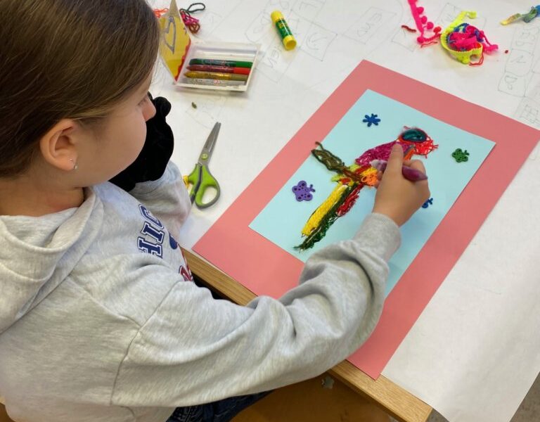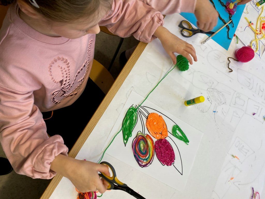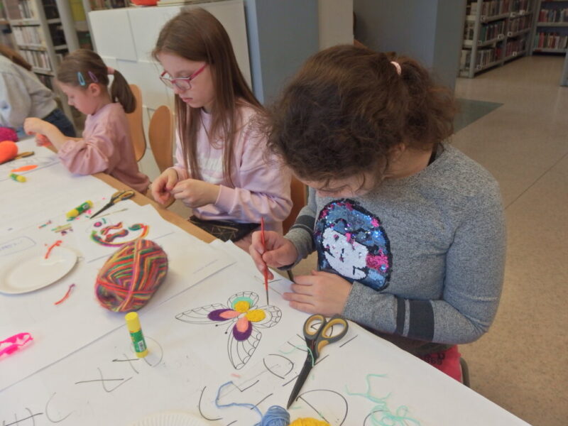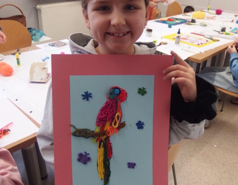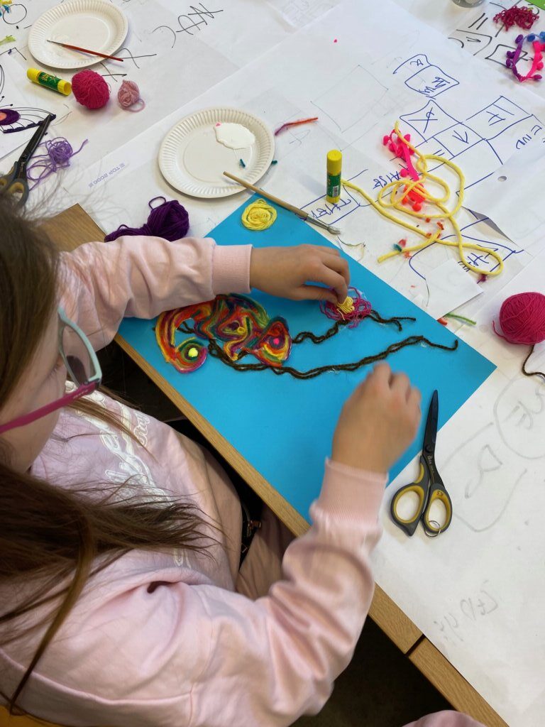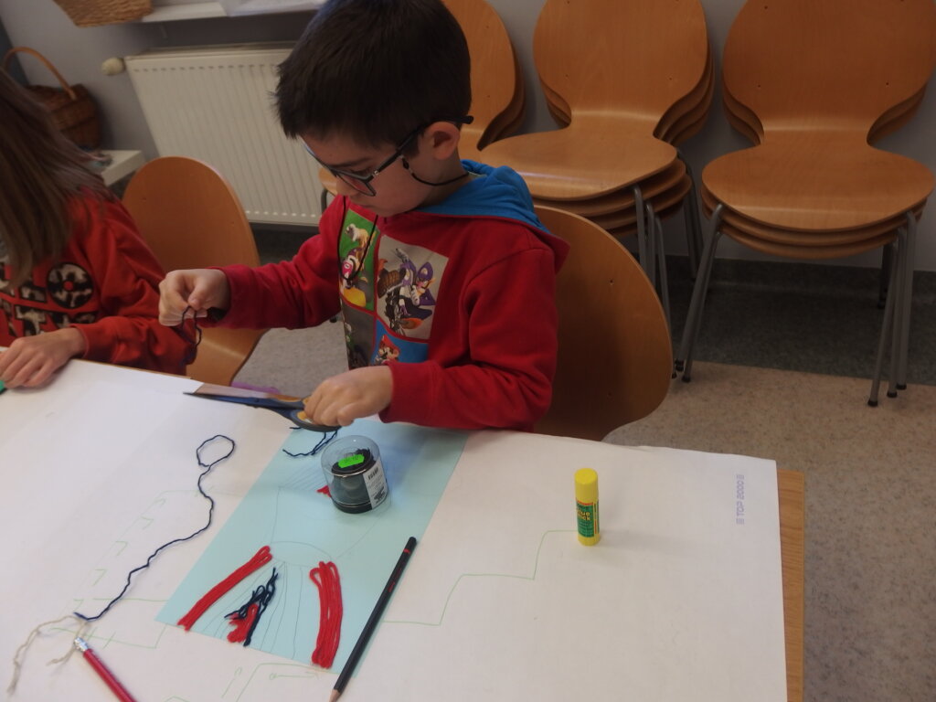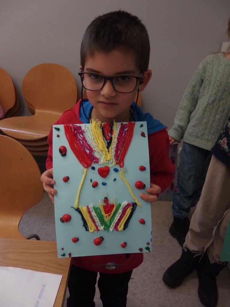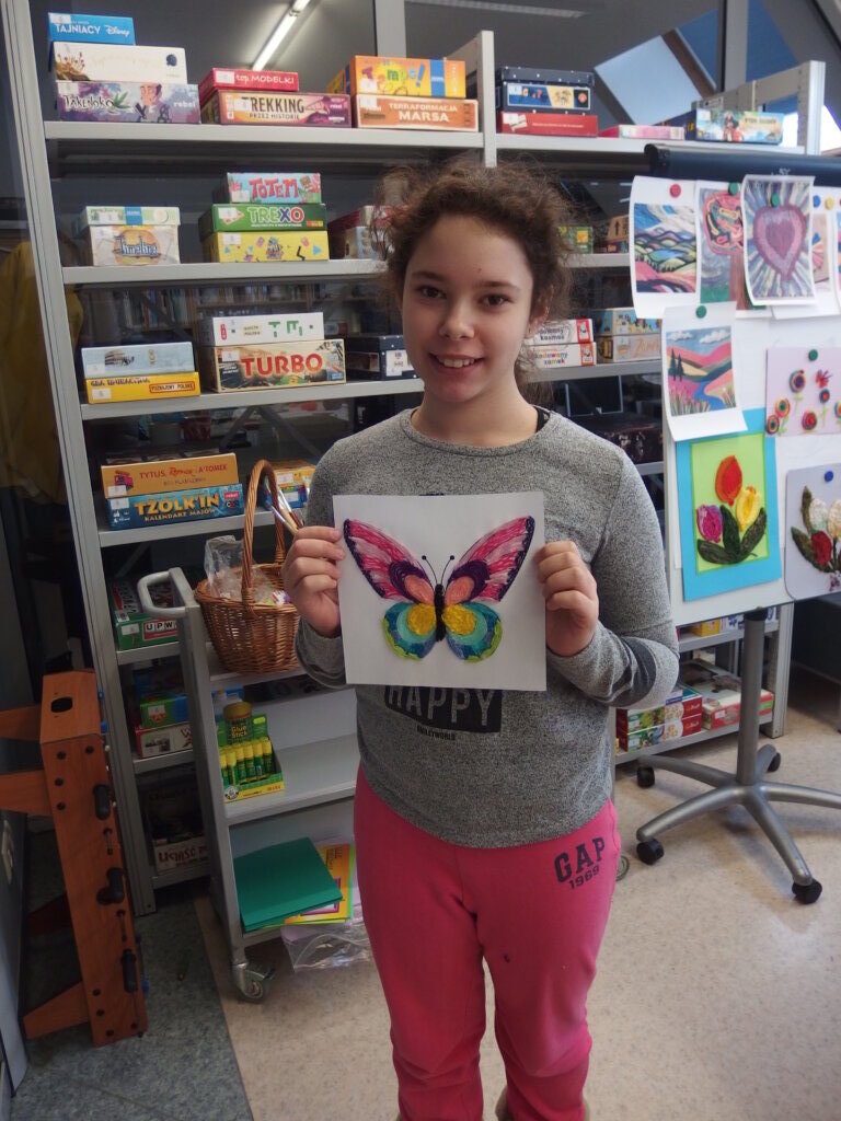 Mistrzowie malarstwa, ich sposób nakładania farby, długie pociągnięcia pędzlem były świetnym przykładem do stworzenia obrazów z włóczki. Nakładanie poszczególnych pasm wełny, komponowanie kolorów, pozwoliło stworzyć uczestnikom zajęć piękne prace. Technika nie była prosta, czasem włóczka nie „współpracowała” z pomysłem i klejem, ale udało się. Powstały wyjątkowe obrazy. Dziękujemy!