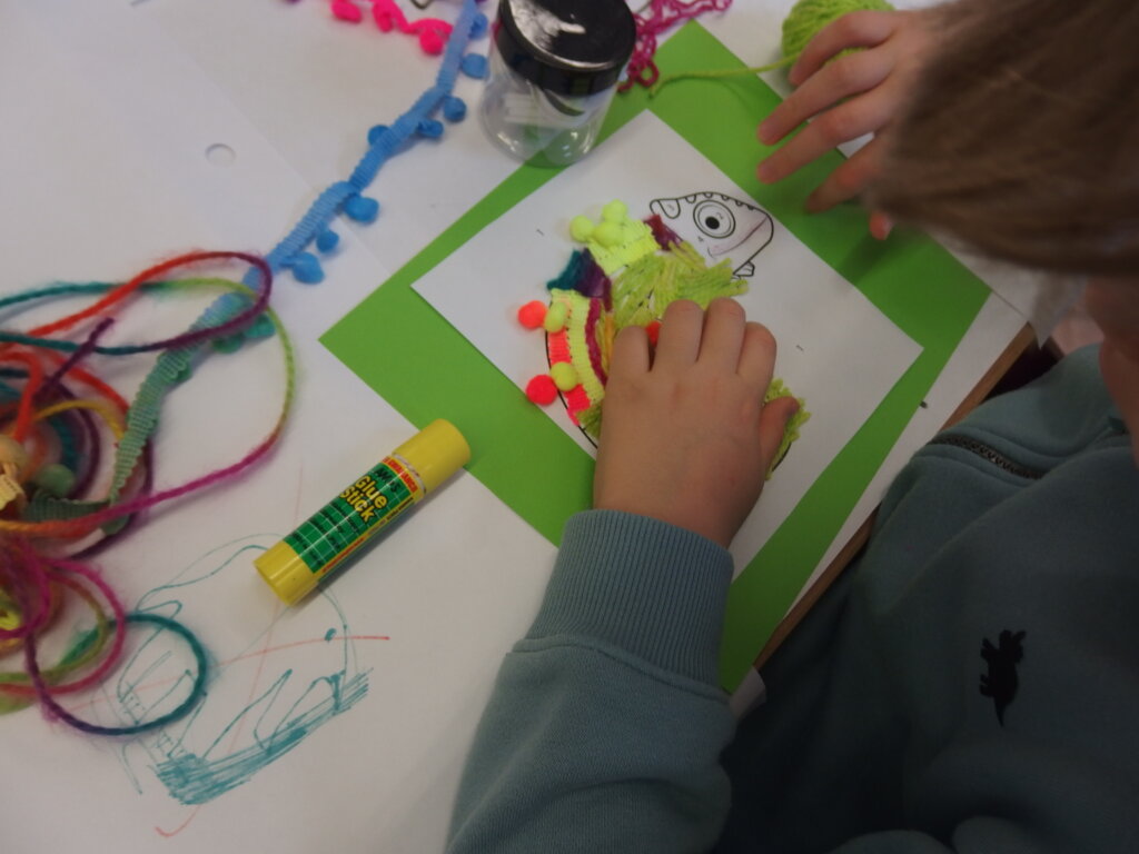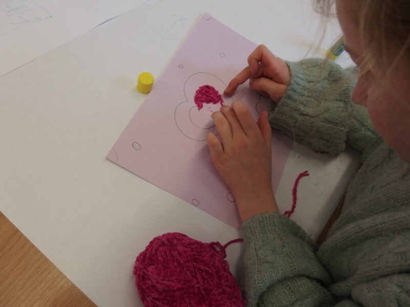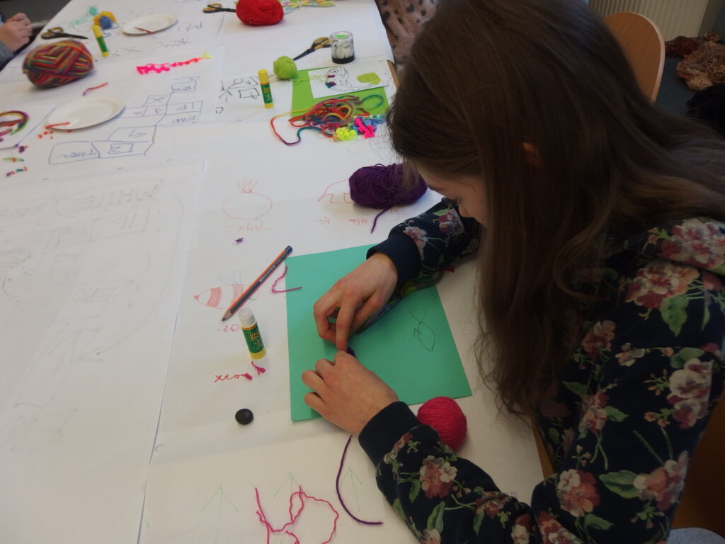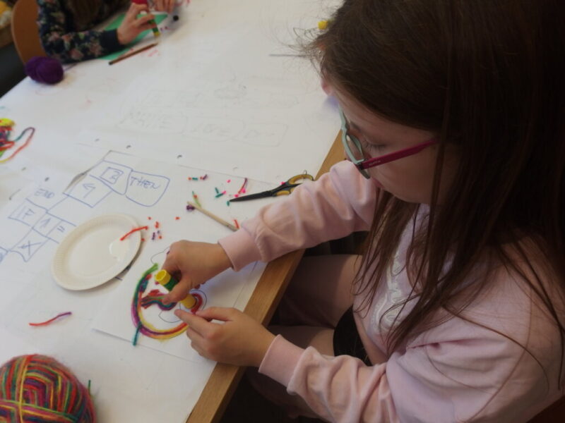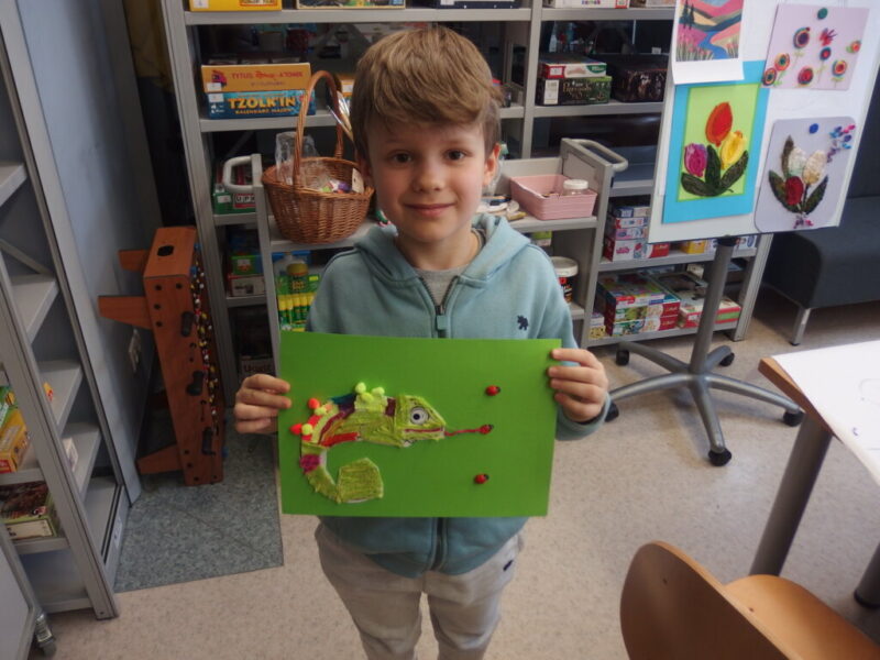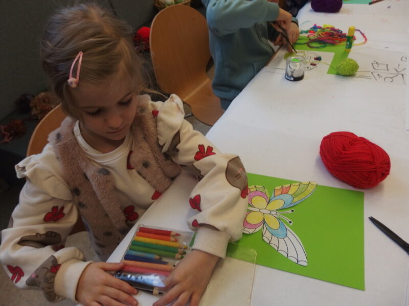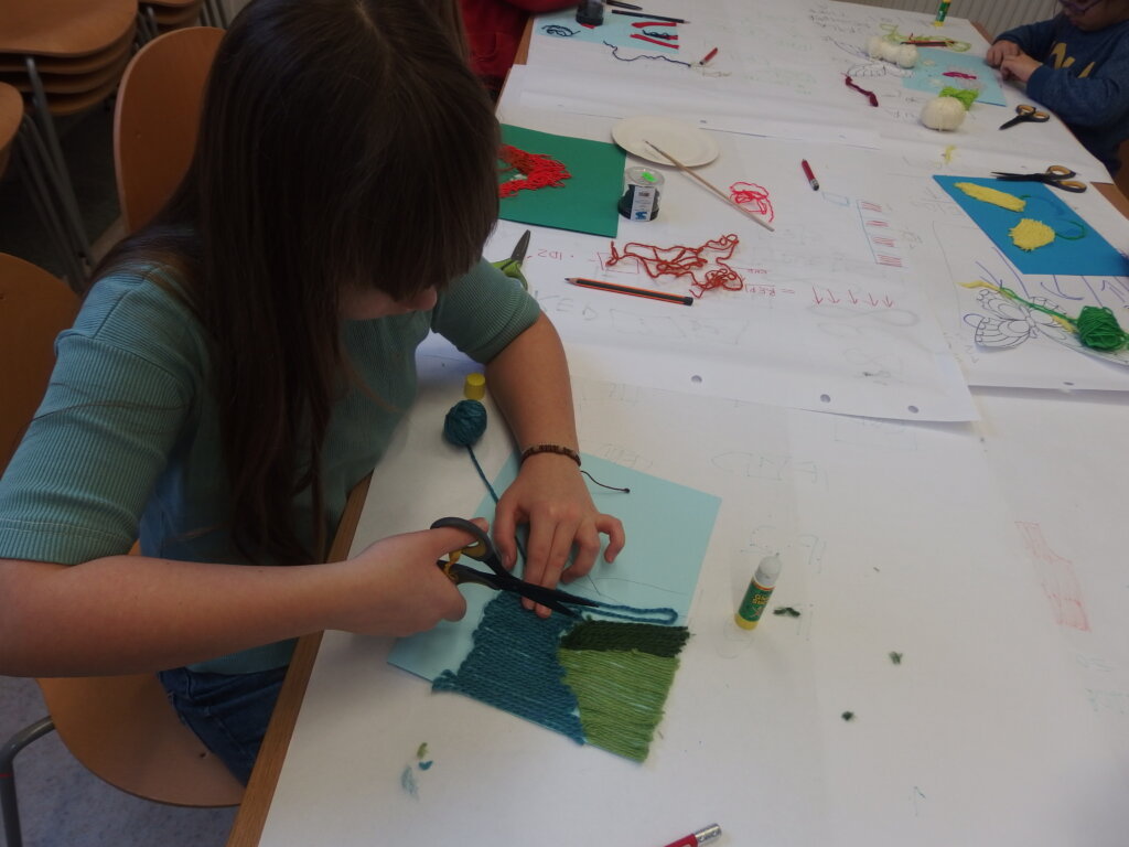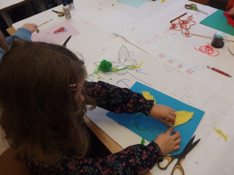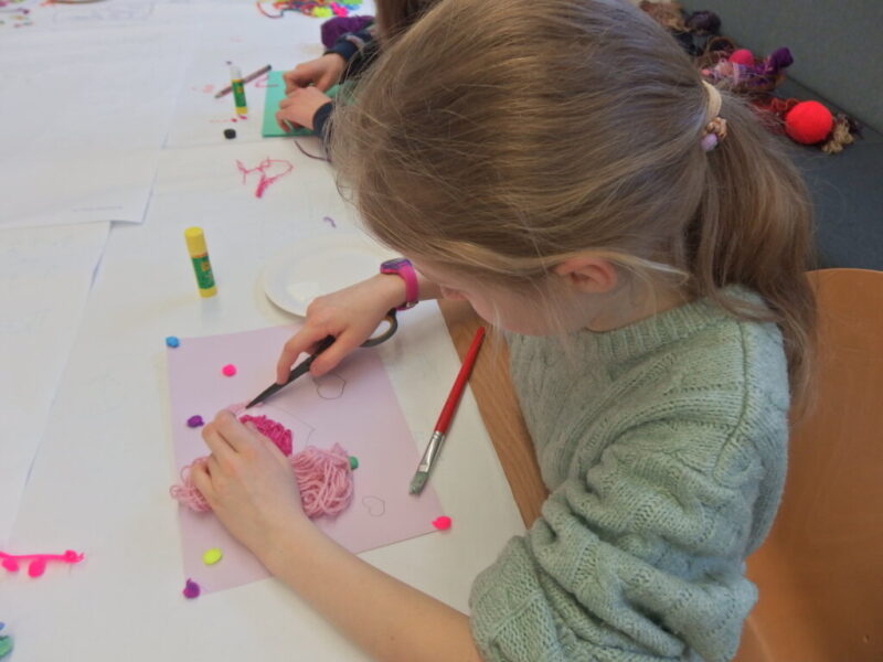 Mistrzowie malarstwa, ich sposób nakładania farby, długie pociągnięcia pędzlem były świetnym przykładem do stworzenia obrazów z włóczki. Nakładanie poszczególnych pasm wełny, komponowanie kolorów, pozwoliło stworzyć uczestnikom zajęć piękne prace. Technika nie była prosta, czasem włóczka nie „współpracowała” z pomysłem i klejem, ale udało się. Powstały wyjątkowe obrazy. Dziękujemy!