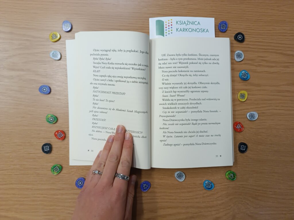 „Magia do góry nogami” opowiada nie tylko o tym co magiczne, ukazuje też siłę łączącej rodzeństwo więzi i przyjacielskiego wsparcia, trudy życia związane z odmiennością wśród rówieśników, brakiem mamy i dość oschle traktującym dzieci ojcem. Polecam, jako lekką i zabawną lekturę dla każdego młodego czytelnika (szczególnie jeżeli lubicie koty, smoki… i ich połączenia). Tę książkę można znaleźć w Bibliotece Dziecięco-Młodzieżowej, w dziale fantastyczno-realistycznym, wraz z jej kontynuacją „Papier, nożyczki, kamień”.