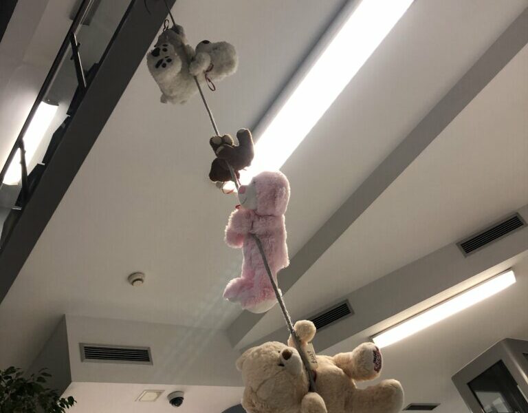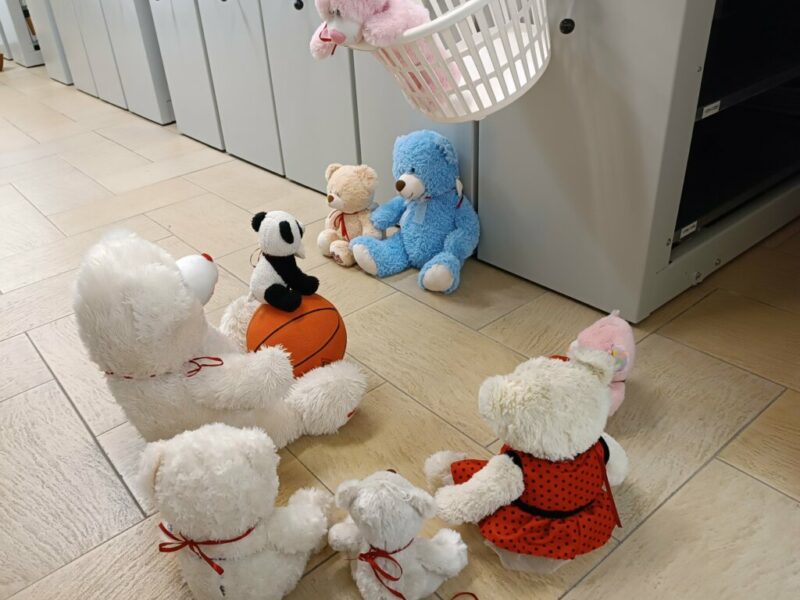 Kiedy drzwi biblioteki zamknęły się za ostatnimi czytelnikami, a dzieci wróciły do domów, w bibliotecznych salach zaczęła się… prawdziwa misiowa magia! Pluszowi goście, pozostawieni na nocowanko po Światowym Dniu Pluszowego Misia, wcale nie mieli zamiaru spać.