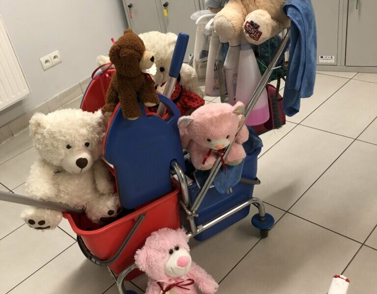 Rano bibliotekarze zastali ślady nocnej przygody: rozsypane kredki, otwarte książki i podejrzanie przechylone maskotki. Jednak wszyscy wiedzą, że to tylko dowód na to, jak wspaniale bawiły się nasze pluszaki.