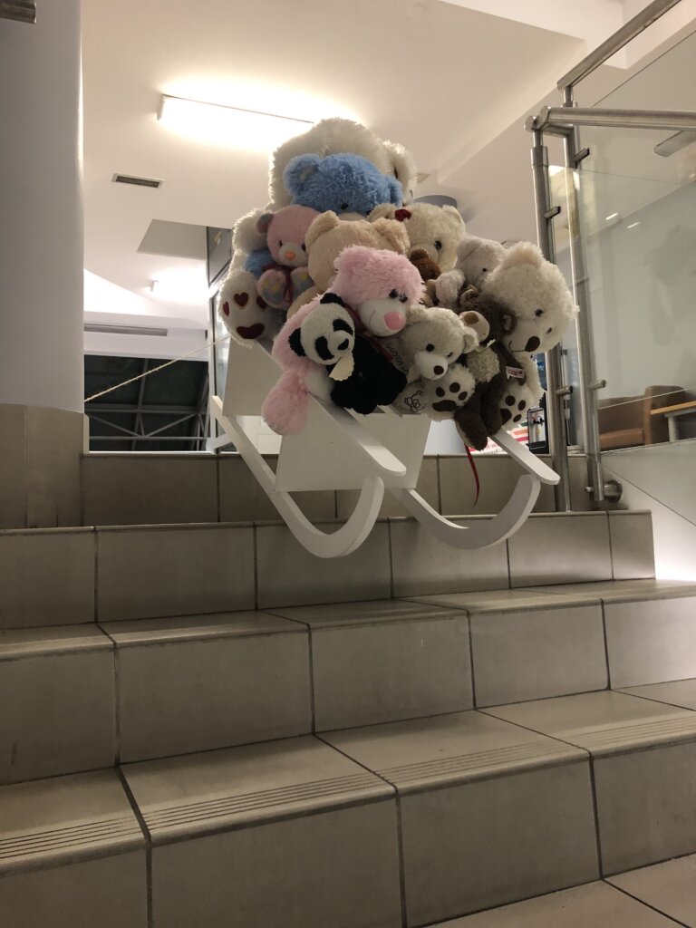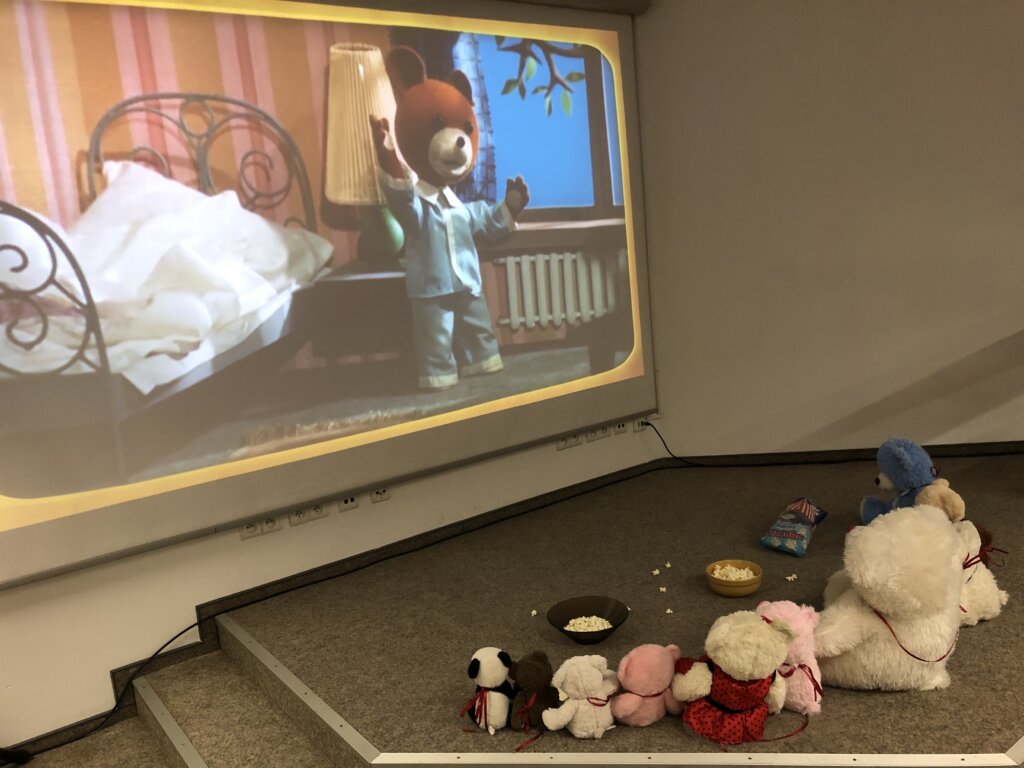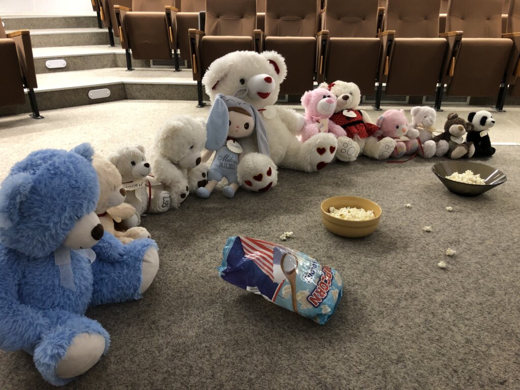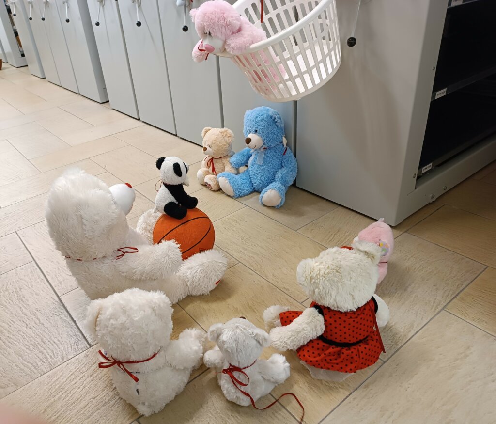 Kiedy drzwi biblioteki zamknęły się za ostatnimi czytelnikami, a dzieci wróciły do domów, w bibliotecznych salach zaczęła się… prawdziwa misiowa magia! Pluszowi goście, pozostawieni na nocowanko po Światowym Dniu Pluszowego Misia, wcale nie mieli zamiaru spać.