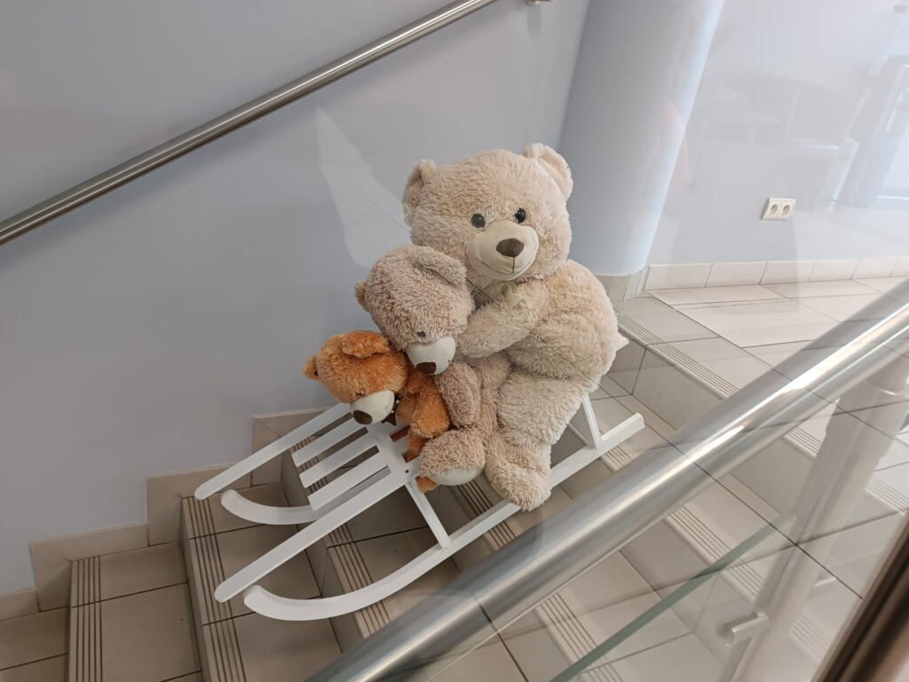 Gdy zegar wybił późną godzinę, misie wreszcie zmęczyły się zabawą. Poukładały książki tak, jak potrafiły (nie zawsze idealnie…), pozgarniały rozrzucone zabawki i odłożyły gry planszowe na miejsce, a następnie wróciły do swojego łóżeczka, udając, że grzecznie spały przez całą noc.