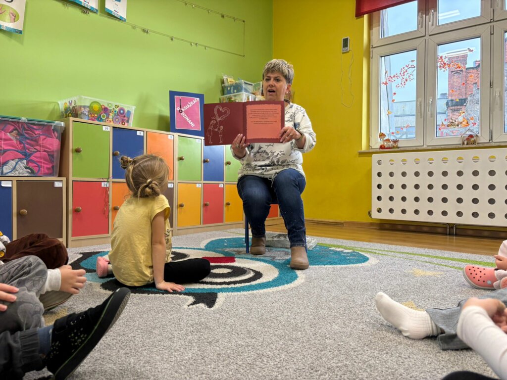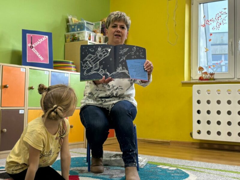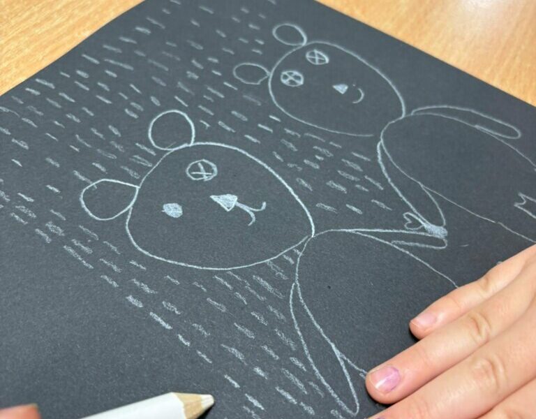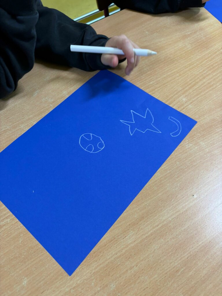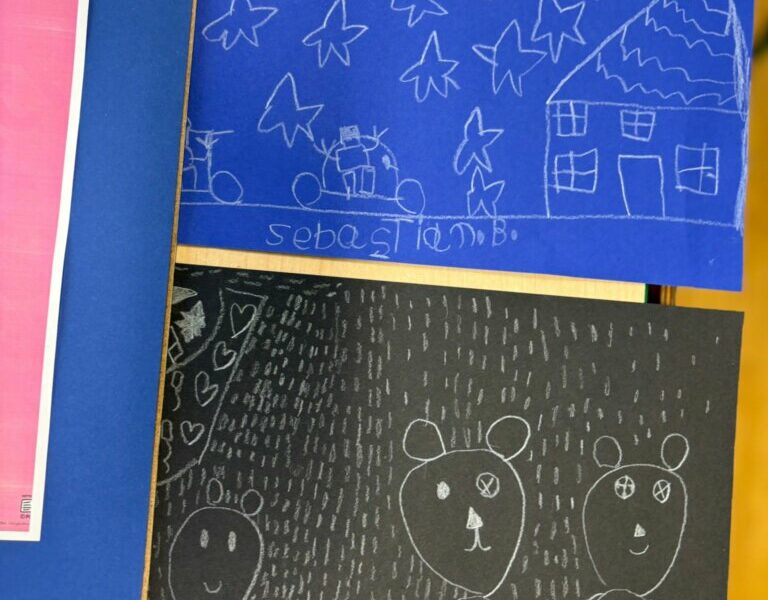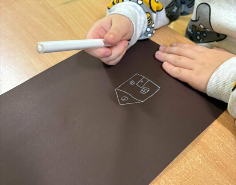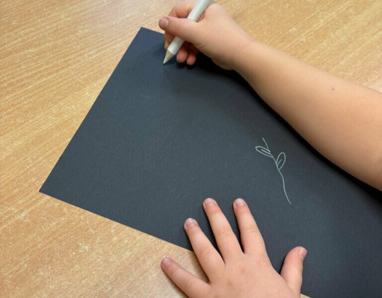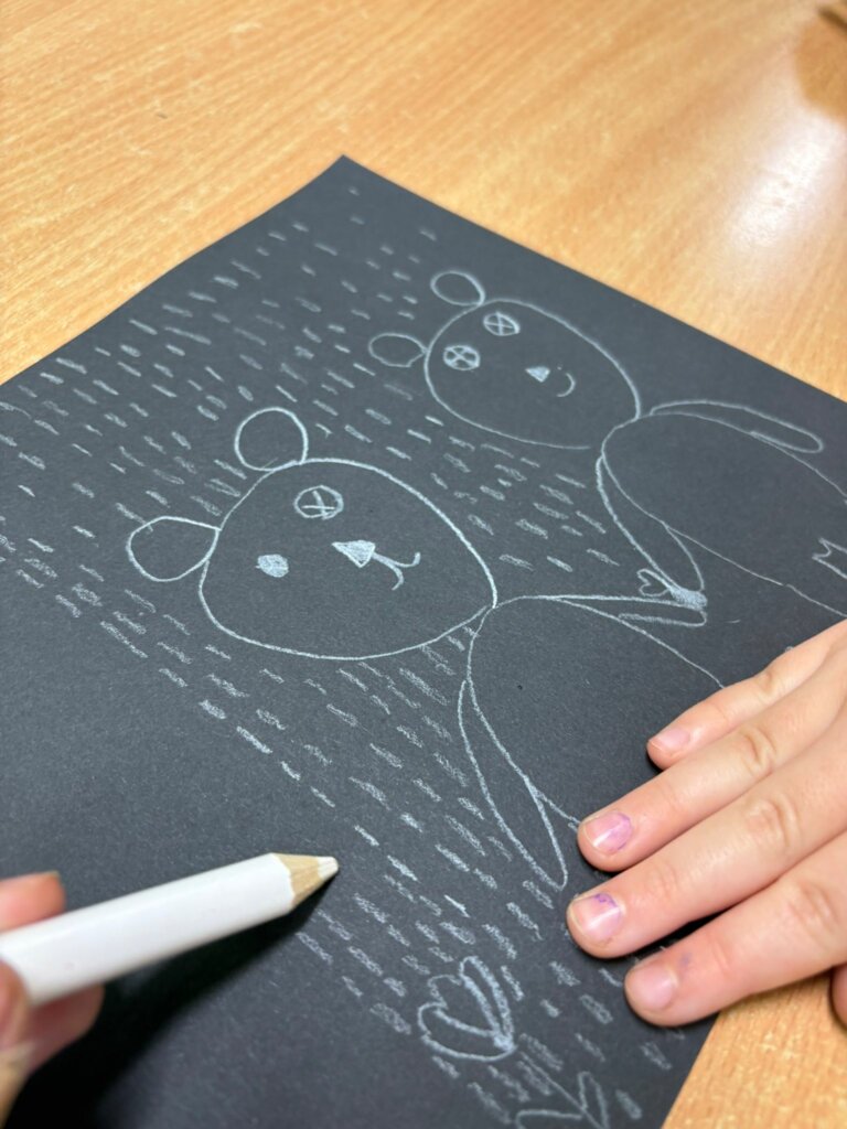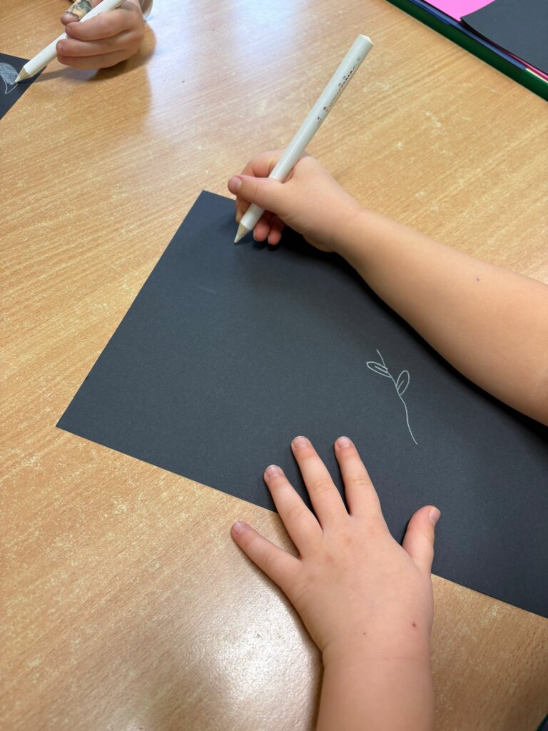 Dzisiejsze spotkanie w ramach Dyskusyjnego Klubu Książki „Fraszka” upłynęło na poszukiwaniu odpowiedzi na pytanie: do czego właściwie służy biała kredka? Dzieci zgodnie stwierdziły, podobnie jak Zuzia, bohaterka książki Małgorzaty Falkowskiej pt. „Po co komu biała kredka?”, że białej kredki nie widać, gdy się nią rysuje po białym papierze.