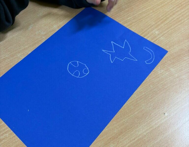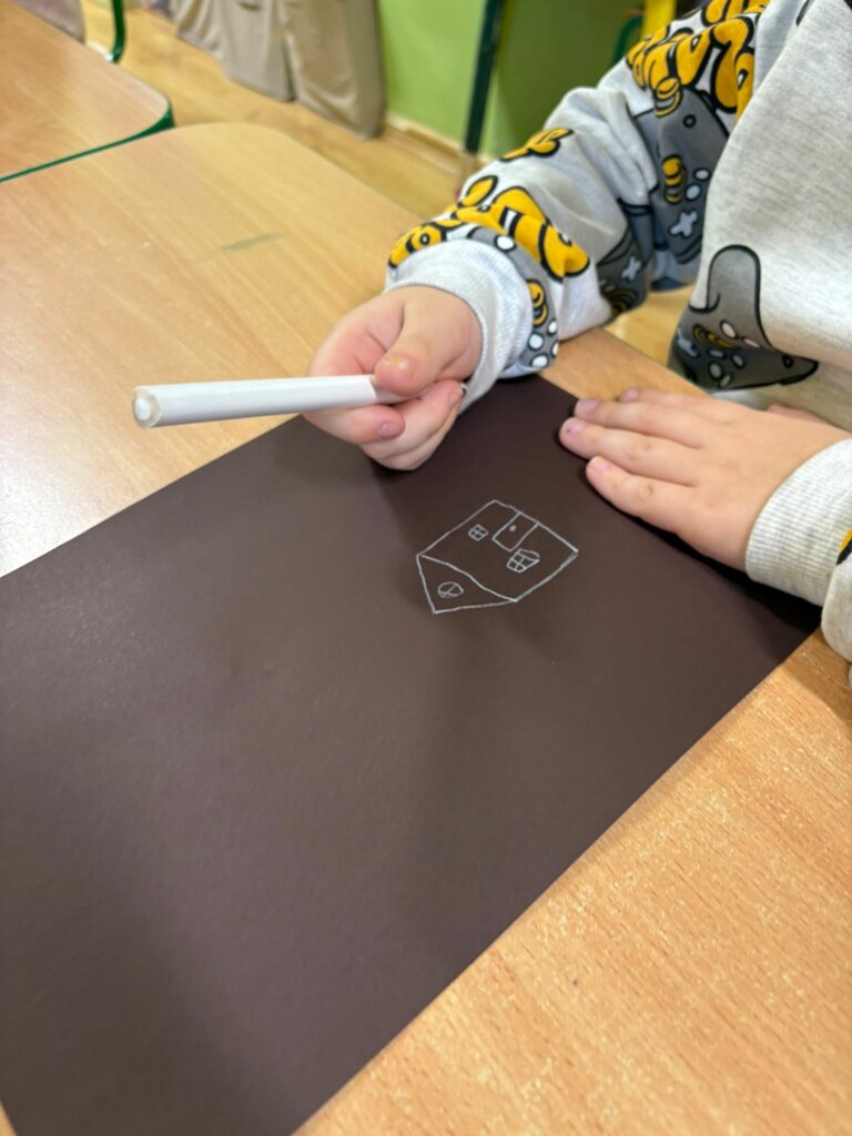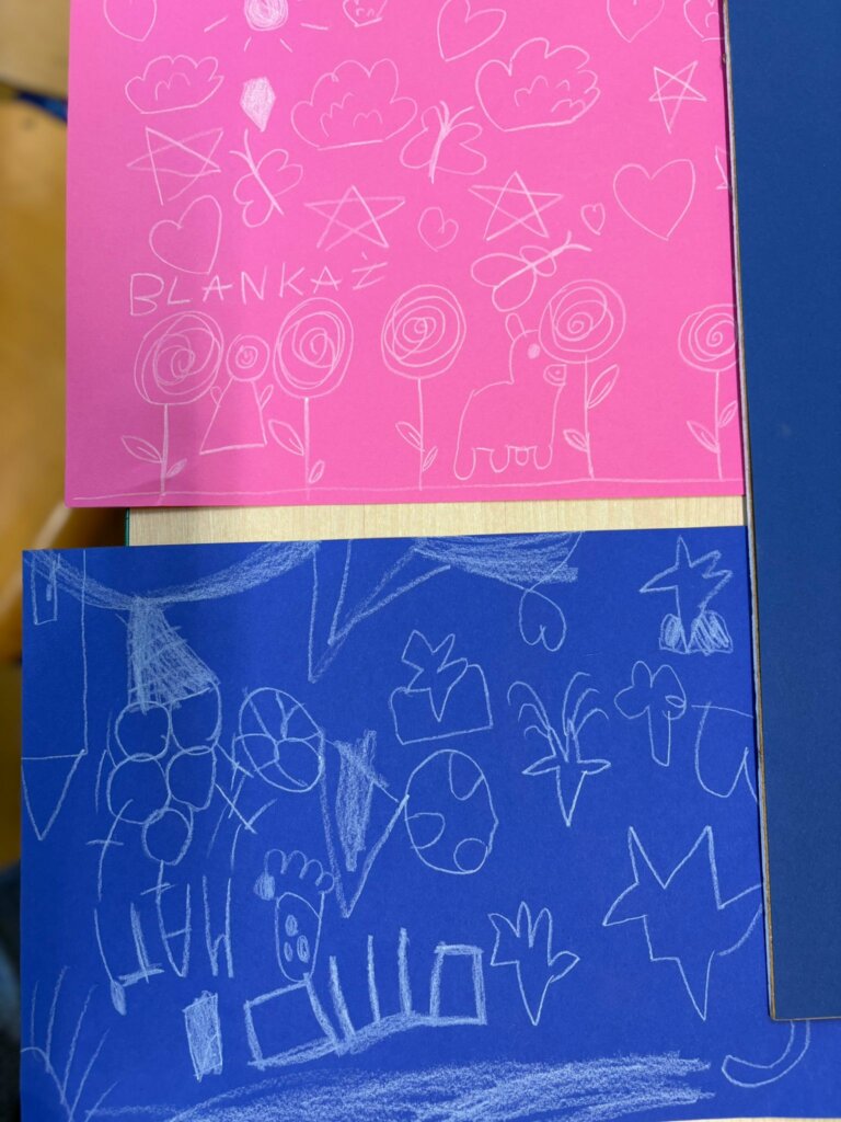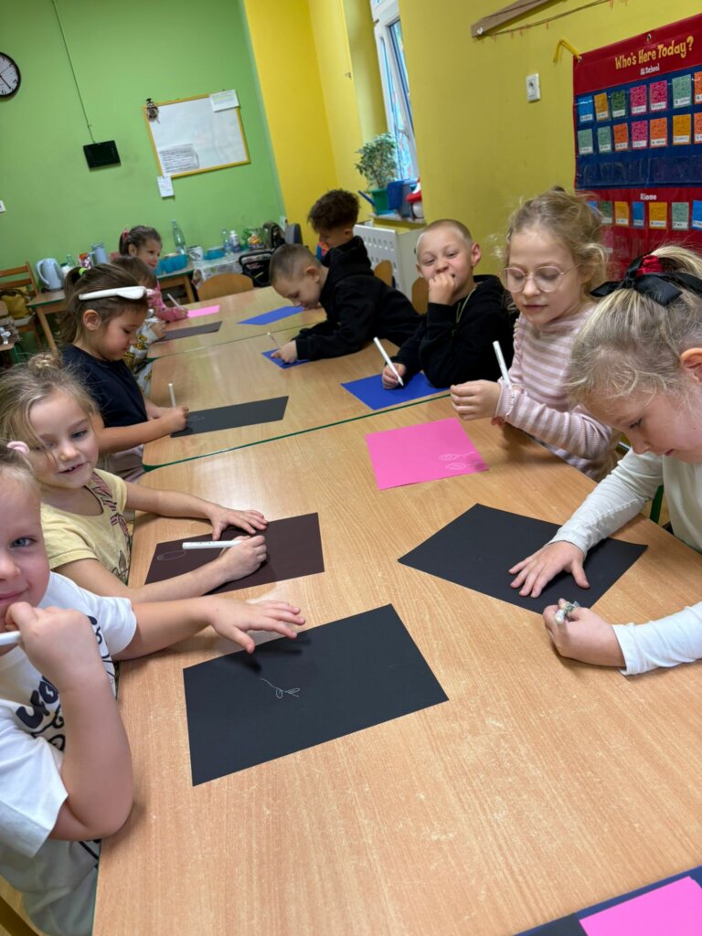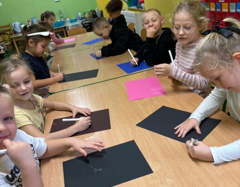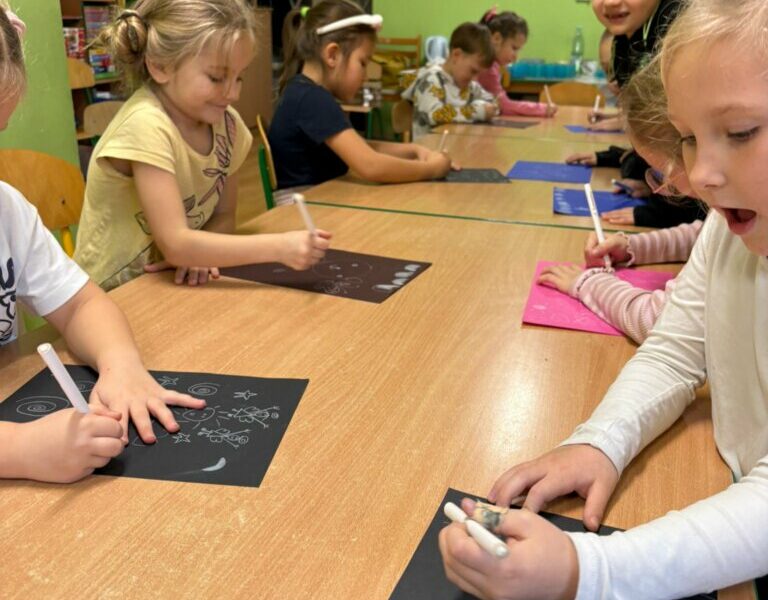 Przedszkolaki, zachęcone do wypowiedzi, podzieliły się pomysłami i swoimi doświadczeniami, odkrywając kolejne, często nietypowe zastosowania tego mało używanego przyboru. Rozmowa zakończyła się zaskakującym wnioskiem: czasami niektóre rzeczy na pierwszy rzut oka wyglądają zupełnie niepozornie i mogą wydawać się niepotrzebne, bezużyteczne lub nieważne. Zupełnie jak biała kredka na białym papierze. Wystarczy jednak zmiana perspektywy i biała kredka staje się wyjątkowa. Trzeba tylko znaleźć sposób jej wykorzystania – inny niż zazwyczaj. Oryginalne odpowiedzi Smerfów potwierdziły, że nawet najprostszy przedmiot może stać się inspiracją do pobudzenia wyobraźni i wykorzystania go w niekonwencjonalny sposób.