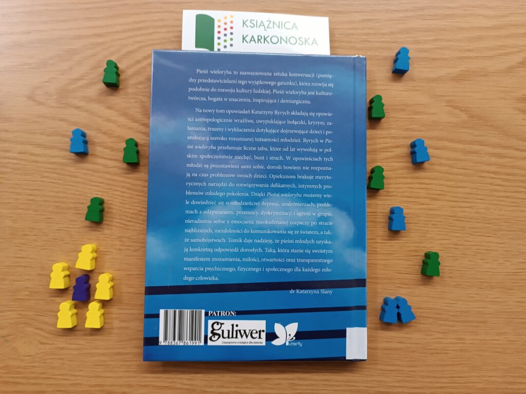 Takich książek potrzeba na polskim rynku wydawniczym. „Pieśń wieloryba” mogłaby być lekturą szkolną, myślę, że przyniosłaby młodym ludziom wiele pożytku. Gorąco polecam dla każdego nastolatka i dorosłego (szczególnie wychowującego/pracującego z młodzieżą). Tę książkę Katarzyny Ryrych można wypożyczyć w Bibliotece Dziecięco-Młodzieżowej (w dziale powieści).