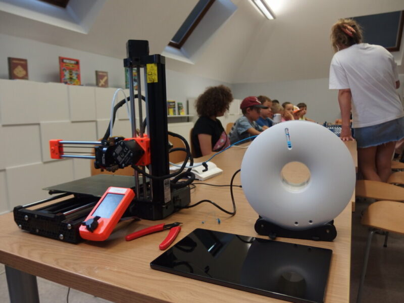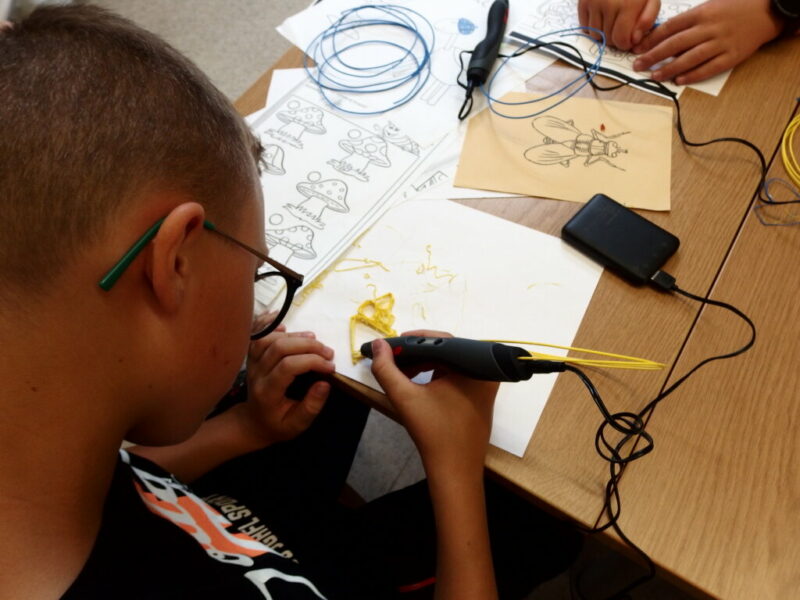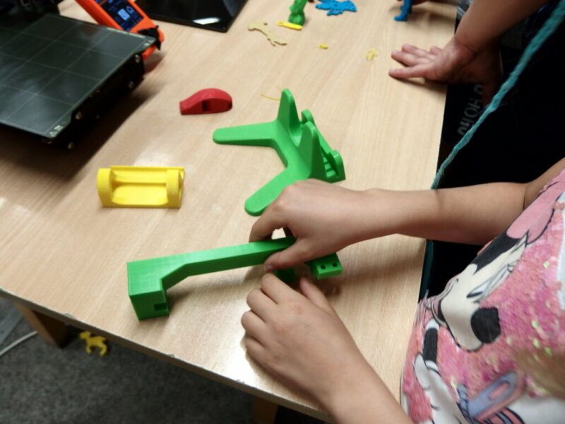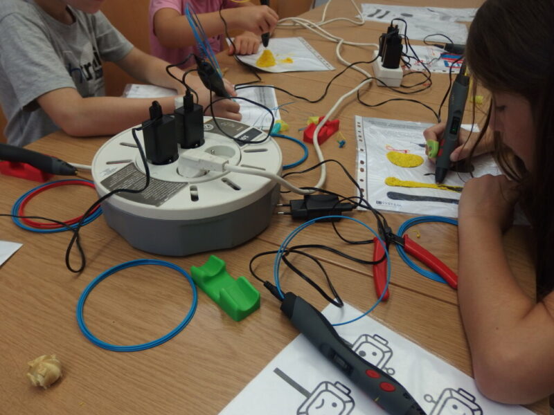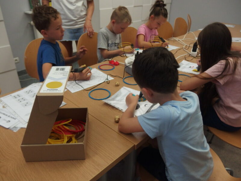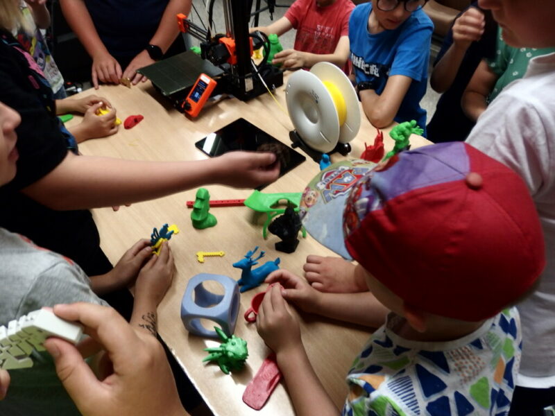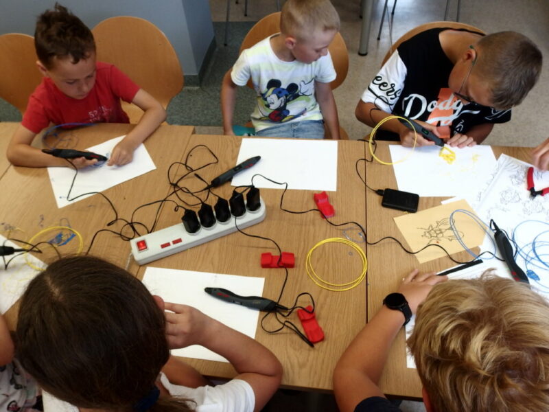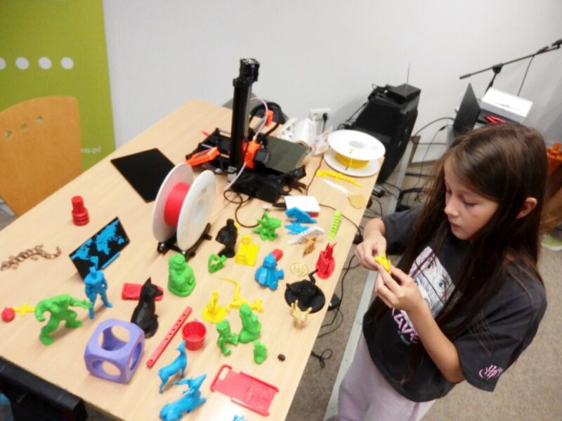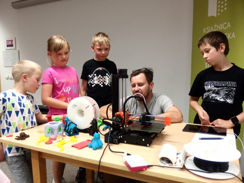 W ten pobudzający wyobraźnię i kreatywność czas czytelnicy mieli możliwość skorzystania z szablonów lub stworzenia własnych projektów, które później z pomocą kolorowych filamentów przemieniali na figury przestrzenne. Te przedmioty, wraz z wydrukowanymi na specjalnej drukarce breloczkami z imieniem, mogli zabrać po zajęciach do domów, by przypominały im o tym radosnym, wypełnionym fascynującą nauką czasie.
