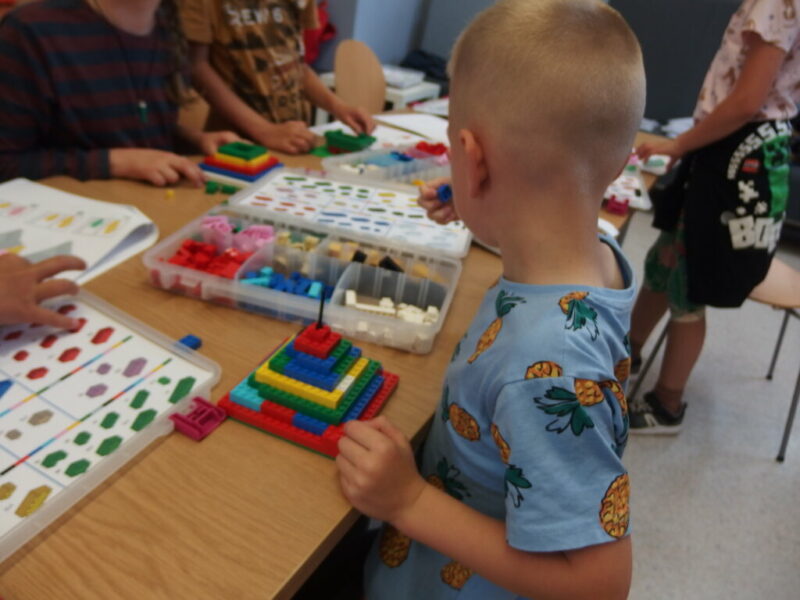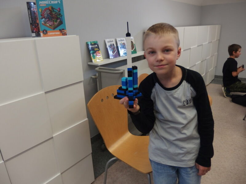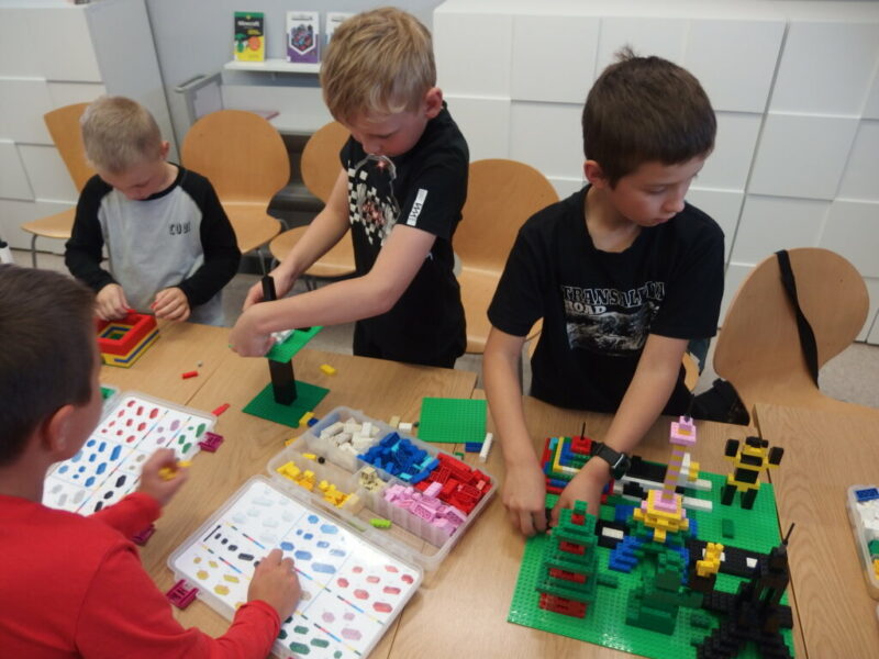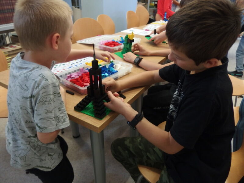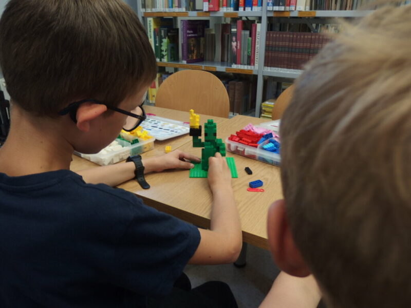 1 sierpnia wiele się działo. Furorę robił przypominający pieska robot, dzięki któremu dzieci mogły poznać proste hasła z dziedziny robotyki. Z pomocą długopisów na filamenty drukowane były sery dla myszki, grzybki, palmy i wiele innych. Dodatkowo do naszej biblioteki napłynęło sporo fanów Minecrafta i klocków LEGO. Na dodatkowych zajęciach dzieci poznawały podstawy grania w tę popularną, internetową grę. Dowiadywały się także o różnych trickach konstrukcyjnych, by później przenieść swoje wirtualne projekty na modele z kolorowych klocków. Budowle wyglądały naprawdę imponująco, o czym możecie przekonać się, oglądając poniższe zdjęcia.