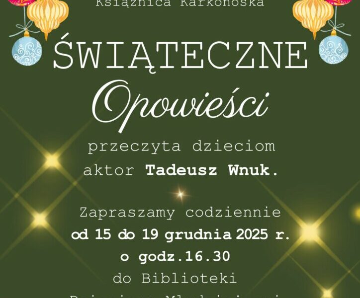 📚🎄Serdecznie zapraszamy Was na wyjątkowy cykl spotkań „Świąteczne opowieści”, podczas których magiczne historie przeczyta Wam aktor Tadeusz Wnuk.📚🎄