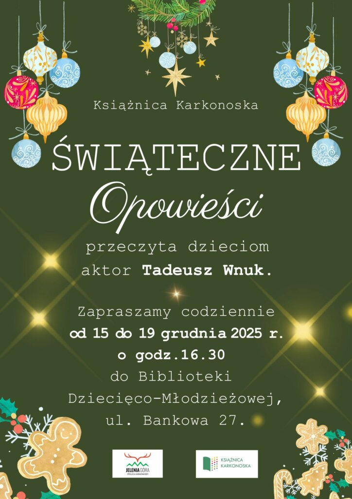 📚🎄Serdecznie zapraszamy Was na wyjątkowy cykl spotkań „Świąteczne opowieści”, podczas których magiczne historie przeczyta Wam aktor Tadeusz Wnuk.📚🎄