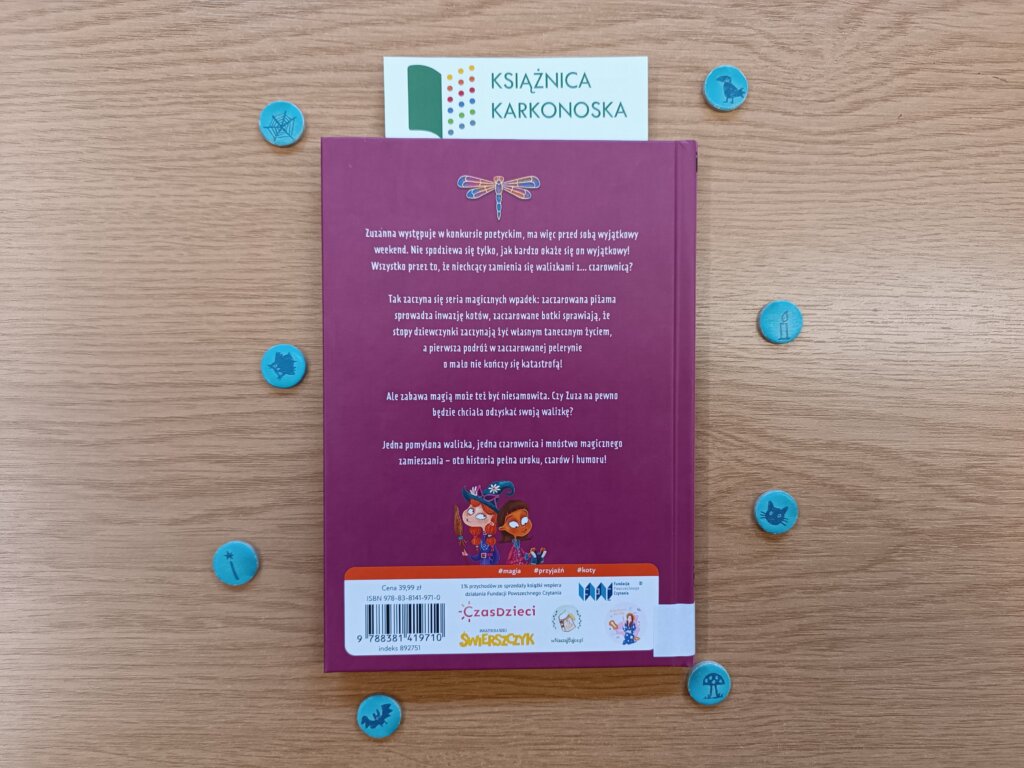 A co gdyby okazało się, że w trakcie podróży zamieniłaś się walizkami z… CZAROWNICĄ? Jakie magiczne ubrania i artefakty można by tam znaleźć? I najważniejsze pytanie: Jakich sztuczek magicznych można by dokonać z pomocą tych osobliwych znalezisk? O tym przekonała się dwunastoletnia Zuzanna. Podczas wyprawy wakacyjnej w jej ręce trafił zbiór niezwykłych przedmiotów Darii Lebiodki, które pokolorowały jej życie na bardzo osobliwe barwy. Latająca peleryna, nawał czarnych kotów albo wyprawiające chałupce botki – to oznacza niezwykłą przygodę.
