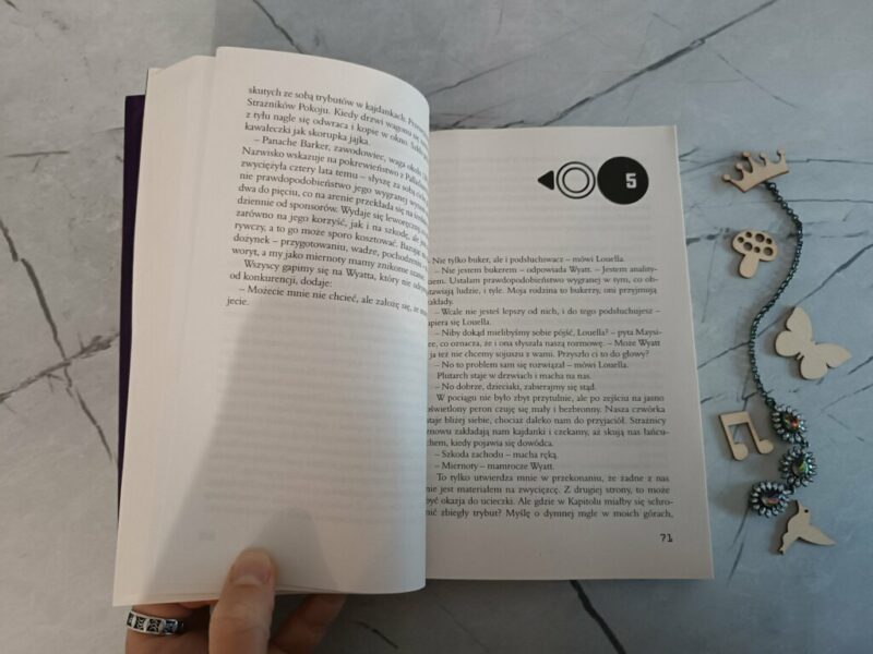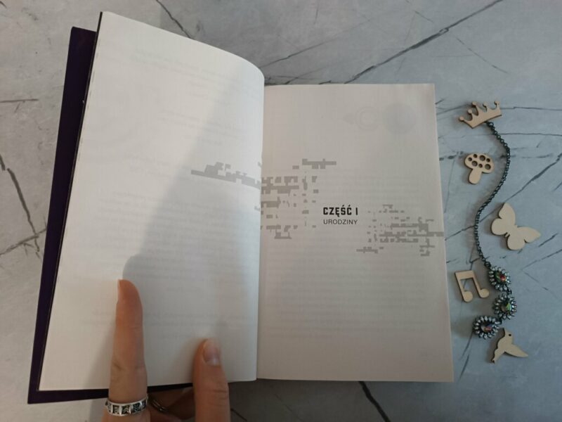 Wydawcy zadbali o podobną szatę graficzną okładki i wnętrza (i tym razem zachowano podział na trzy części). Choć jako tło dobrano fiolety, to nie zabrakło motywu kosogłosa, do tego w złocie i naprzeciw węża. To dobre nawiązanie do istotnego w fabule rekwizytu, do tego metaforycznie opisujące starcie, jakiego będziemy świadkami.