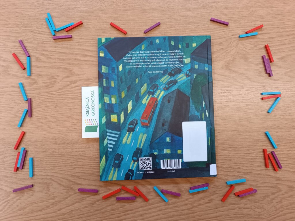 Książka warta uwagi. Jeżeli artystyczny styl Sary Lundberg przypadnie wam do gustu, to w Bibliotece Dziecięco-Młodzieżowej można wypożyczyć nie tylko ten tytuł, ale także „Spacer z kotem” oraz poruszającą biografię artystki Berty Hansson – „Ten ptak, co mieszka we mnie, leci, dokąd chce”.